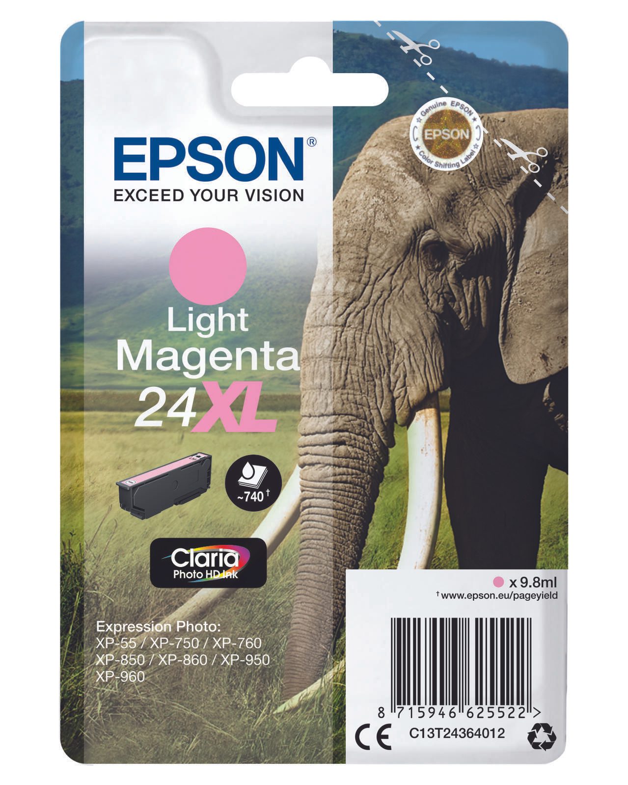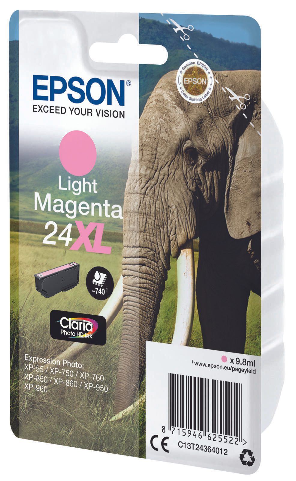 Epson Original 24XL Elefant Druckerpatrone magenta hell 740 Seiten 9,8ml (C13T24364012)