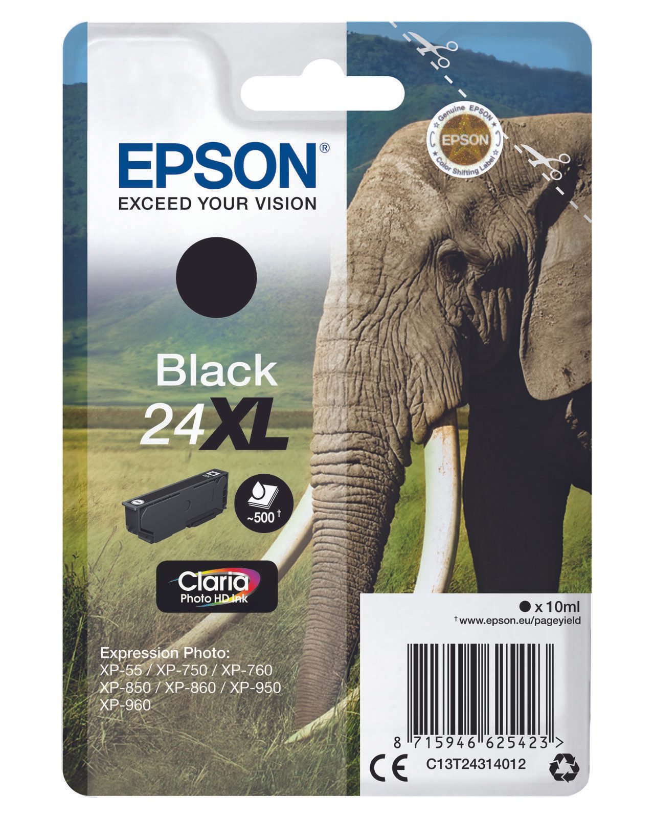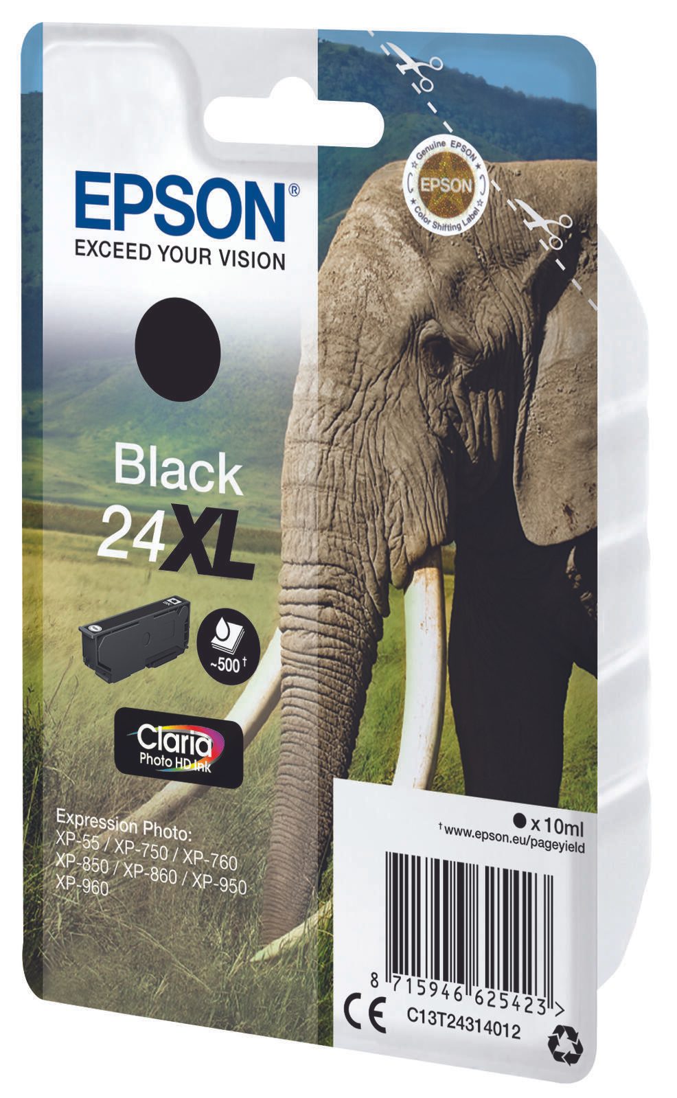Epson Original 24XL Elefant Druckerpatrone schwarz 500 Seiten 10ml (C13T24314012)