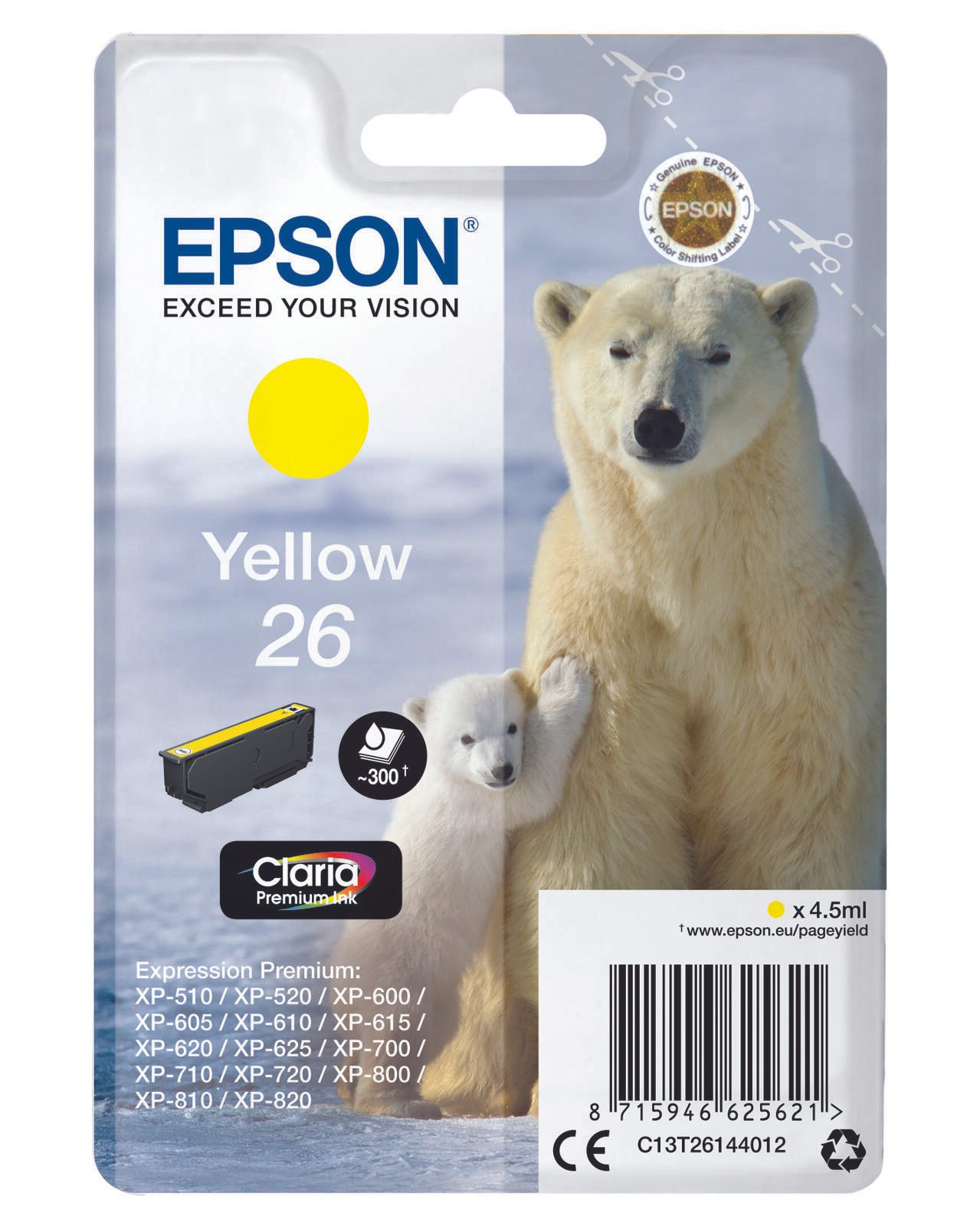 Epson Original 26 Eisbär Druckerpatrone gelb 300 Seiten 4,5ml (C13T26144012)