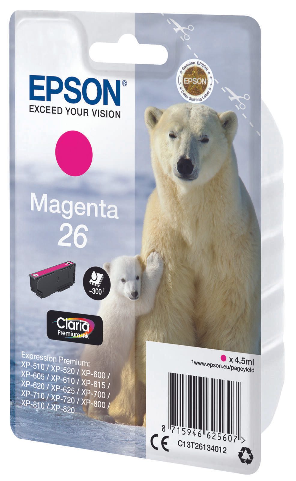 Epson Original 26 Eisbär Druckerpatrone magenta 300 Seiten 4,5ml (C13T26134012)