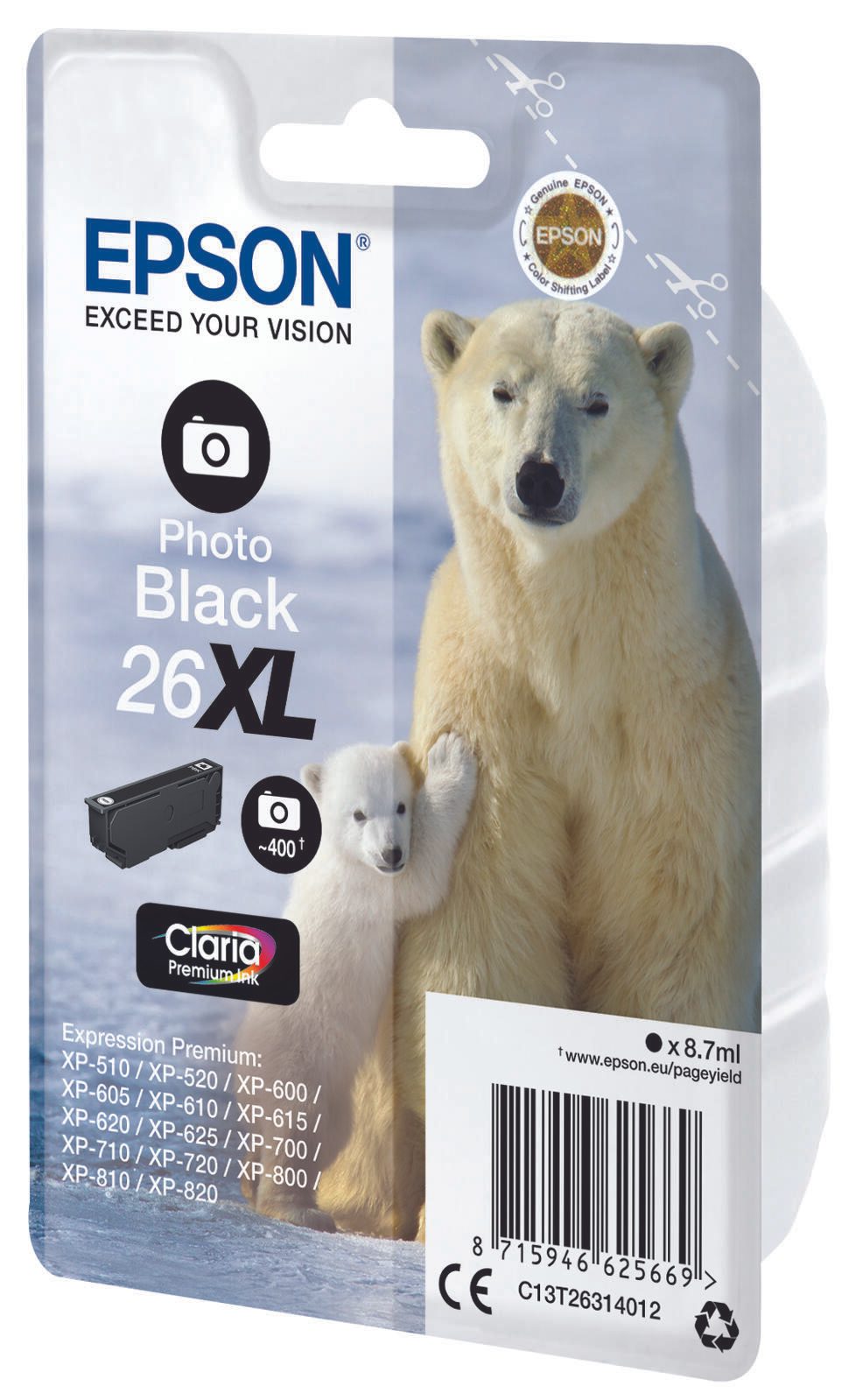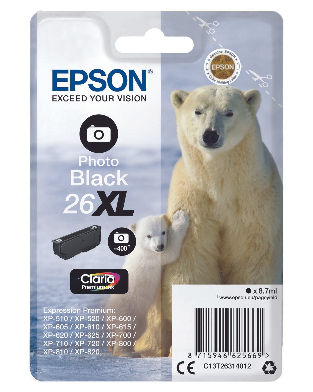 Epson Original 26XL Eisbär Druckerpatrone schwarz hell 400 Seiten 8,7ml (C13T26314012)