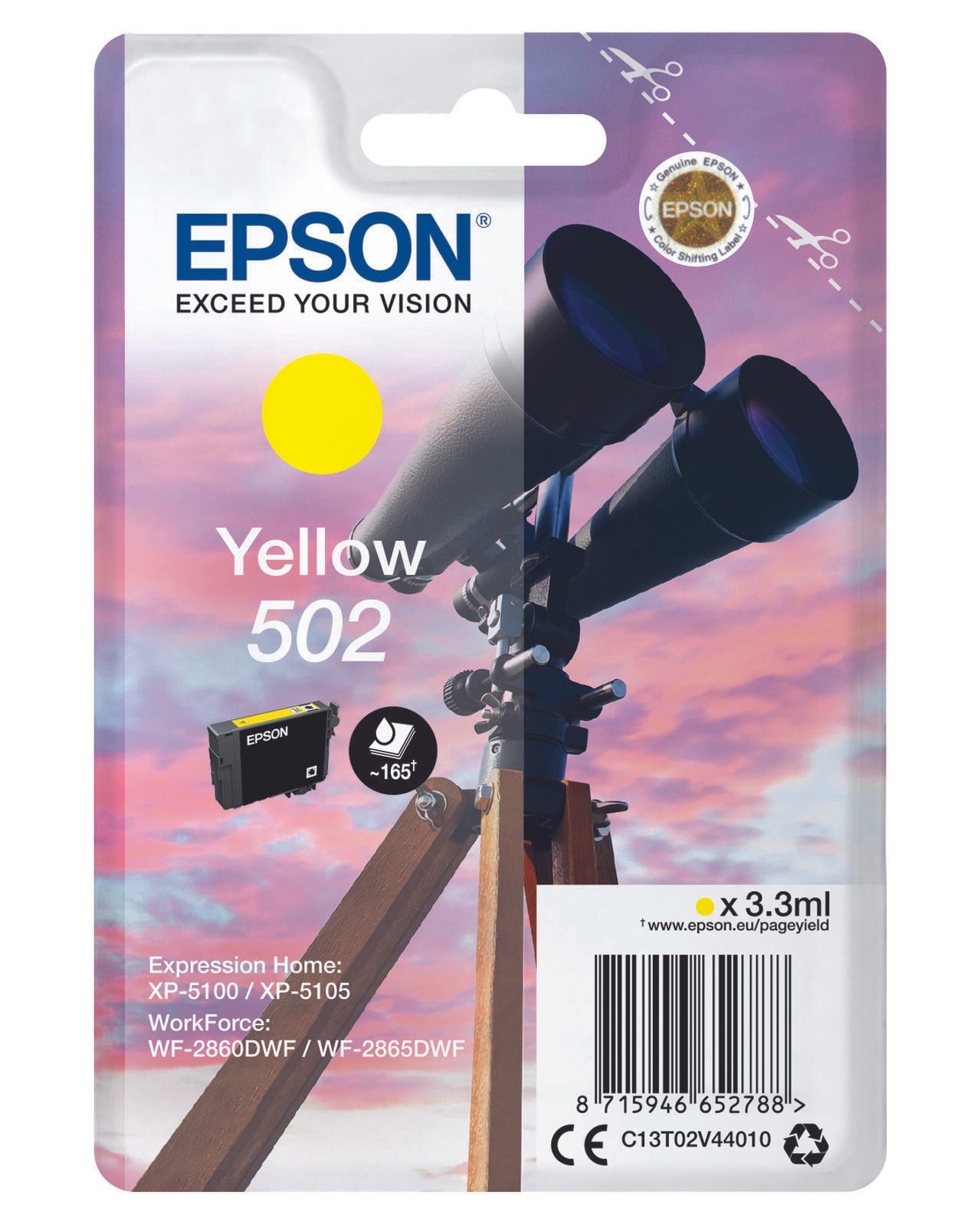 Epson Original 502 Fernglas Druckerpatrone - gelb (C13T02V44010)