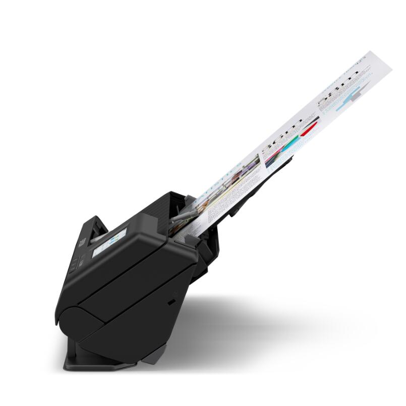 Ein kompakter Netzwerk-A4-Scanner mit geringer Standfläche während des Betriebs, vielseitiger Medienverarbeitung und geringem Stromverbrauch. Durch die U-förmige Papierführung des Scanners kann Papier gescannt werden, ohne die Standfläche des Geräts zu vergrößern. Wechseln Sie in den geraden Papierweg Modus, um Pässe und Broschüren mit einer Dicke von bis zu 5 mm zu scannen. Scannen Sie zu bekannten Cloud-basierten Services wie OneDrive, SharePoint Online und Microsoft Teams*. Hergestellt aus bis zu 30 % recyceltem Kunststoff** und mit einem geringen Stromverbrauch, hat er auch eine geringere Umweltbelastung.