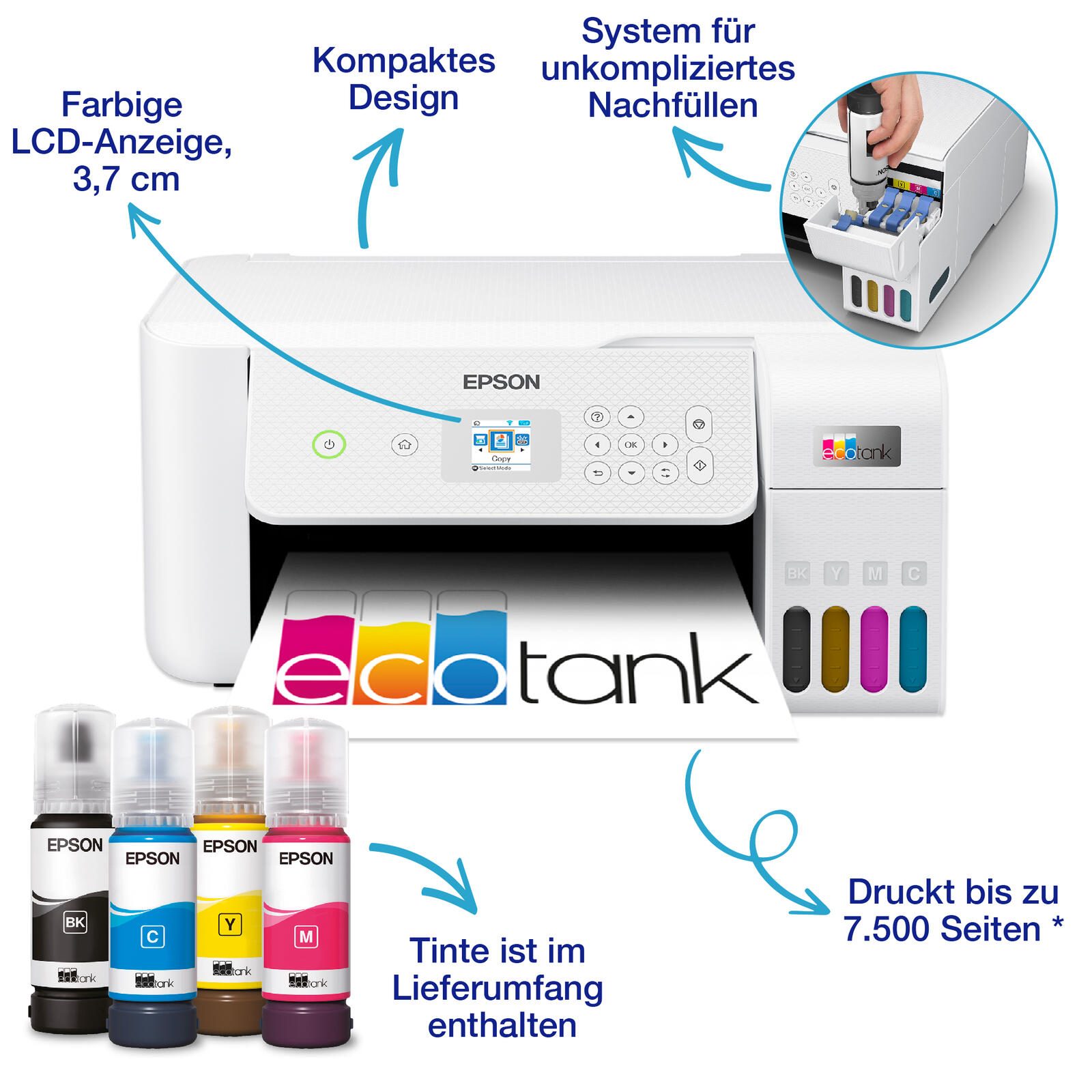 Epson EcoTank ET-2826 A4-Tintentank-Multifunktionsdrucker A4, 3in1, Drucker, Kopierer, Scanner, 3 Jahre Tinte im Lieferumfang enthalten