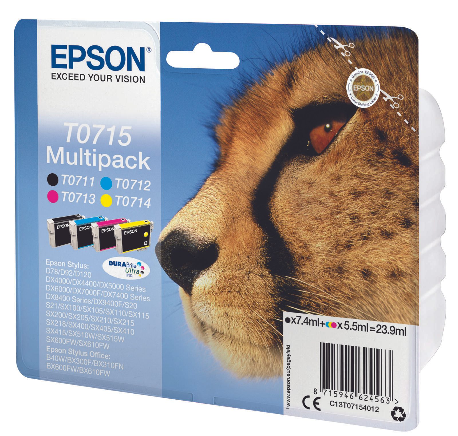 Epson Original T0715 Gepard Druckerpatronen - 4er Multipack (C13T07154012)