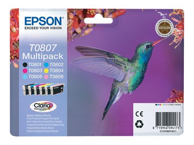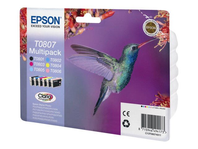 Epson Original T0807 Kolibri Druckerpatronen 6er Multipack BK/C/M/Y/LC/LM (C13T08074020)
