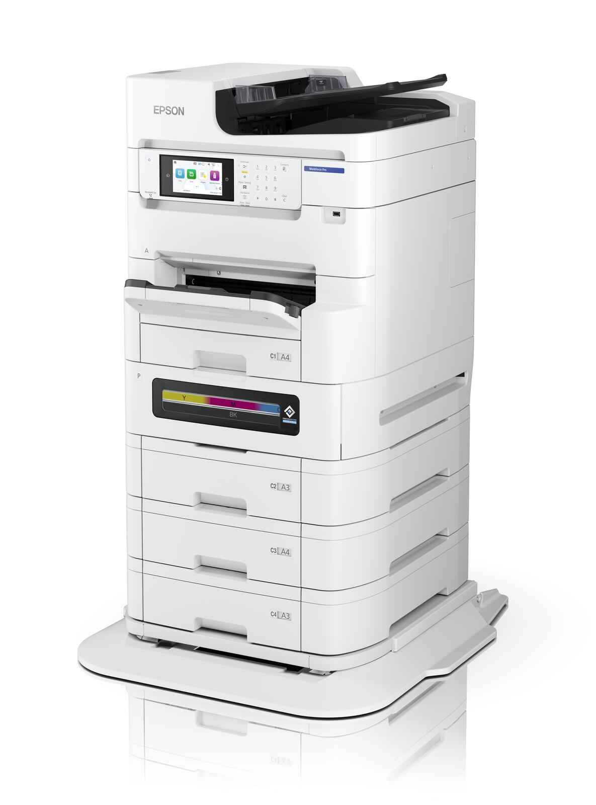 - Effizientes und zuverlässiges A3-4-in-1-Multifunktionsgerät Das langlebige Gerät überzeugt durch geringen Benutzeraufwand sowie Druck-, Kopier-, Scan- und Fax-Funktionen. Der 12,7 cm große Farb-Touchscreen sorgt für einen nahtlosen Betrieb innerhalb Ihrer Epson Flotte.
