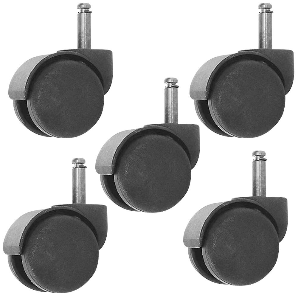 Die Topstar Stuhlrollen für Teppichböden bieten die perfekte Lösung, um deinen Stuhl mühelos über weiche Untergründe zu bewegen. Diese hochwertigen Rollen sind speziell für Teppichböden konzipiert und gewährleisten eine sanfte und schonende Nutzung, ohne den Boden zu beschädigen. Mit ihrem eleganten schwarzen Farbton fügen sie sich harmonisch in jedes Raumdesign ein und sind somit nicht nur funktional, sondern auch ästhetisch ansprechend. Gefertigt aus strapazierfähigem Kunststoff, überzeugen die Stuhlrollen durch ihre Langlebigkeit und Robustheit. Sie sind ideal für den täglichen Einsatz und bieten eine zuverlässige Unterstützung, egal ob im Home Office, im Arbeitszimmer oder im Wohnbereich. Die exzellente Verarbeitung sorgt dafür, dass die Rollen leise und geschmeidig gleiten, was eine angenehme Nutzungserfahrung garantiert. Jede Verpackungseinheit enthält fünf Stuhlrollen, sodass du deinen Stuhl schnell und unkompliziert aufrüsten kannst. Die einfache Montage ermöglicht es dir, die Rollen im Handumdrehen zu wechseln und deinen Stuhl an deine individuellen Bedürfnisse anzupassen. Diese Ersatzrollen sind nicht nur praktisch, sondern tragen auch zur Erhaltung deiner Teppichböden bei, indem sie den Druck gleichmäßig verteilen und somit Abnutzung minimieren. Die Topstar Stuhlrollen für Teppichböden sind die ideale Wahl, wenn du Wert auf Qualität, Funktionalität und ansprechendes Design legst. Sie bieten eine optimale Lösung, um die Beweglichkeit deines Bürostuhls zu verbessern, während sie gleichzeitig den Komfort und die Sicherheit deiner Teppichböden gewährleisten.Technische Daten