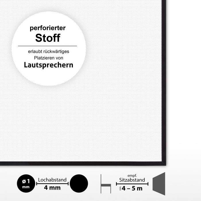 - weißer Leinwandstoff sorgt für hohen Betrachtungskomfort und ein kontrastreiches Bild