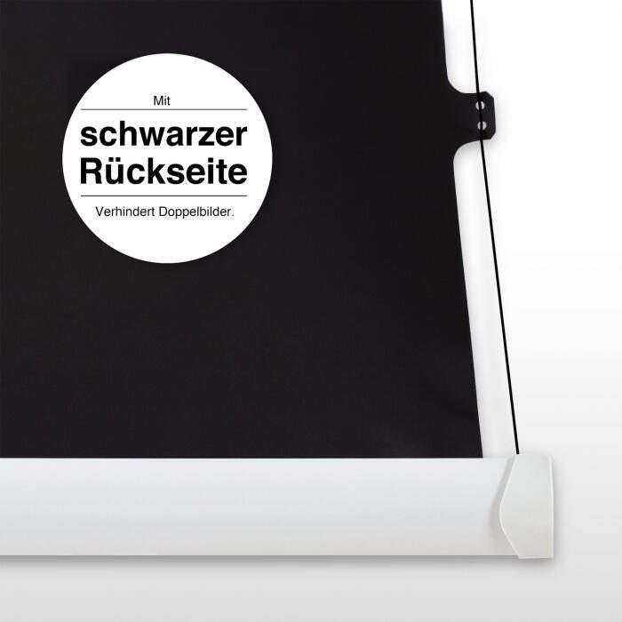- lichtundurchlässige Leinwandrückseite verhindert Doppelbilder