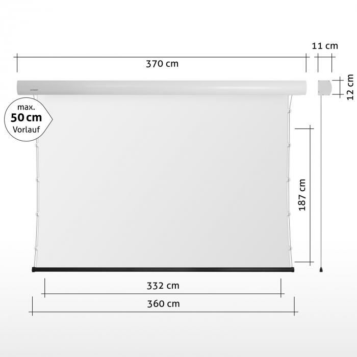 - mattweißer Leinwandstoff für kontrastreiches Bild und hohen Betrachtungskomfort