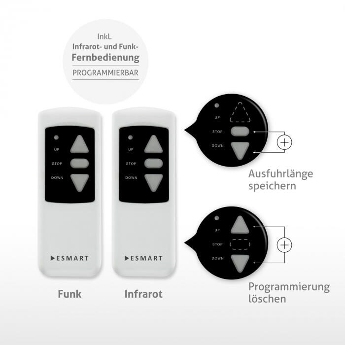 - Steuerung über Wandsteuerung, Funkfernbedienung oder Infrarotfernbedienung