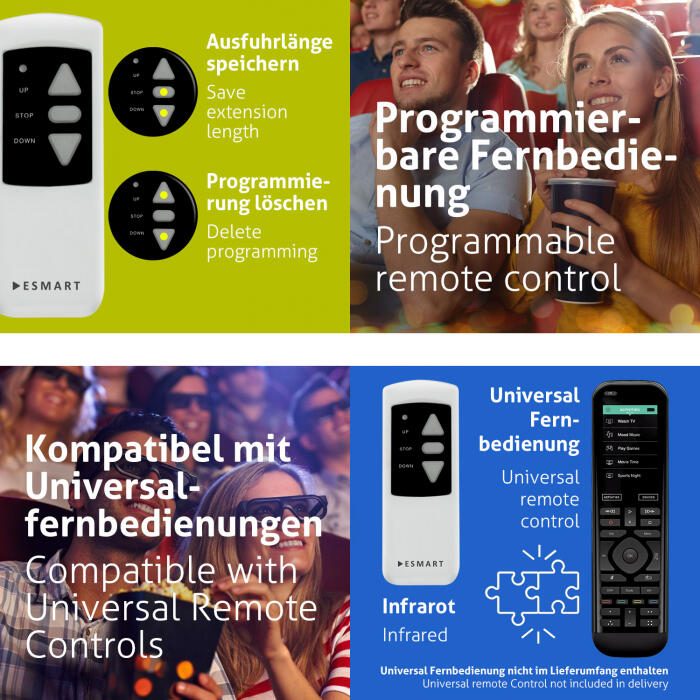 - Steuerung über die Wandsteuerung oder Infrarot-Fernbedienung
