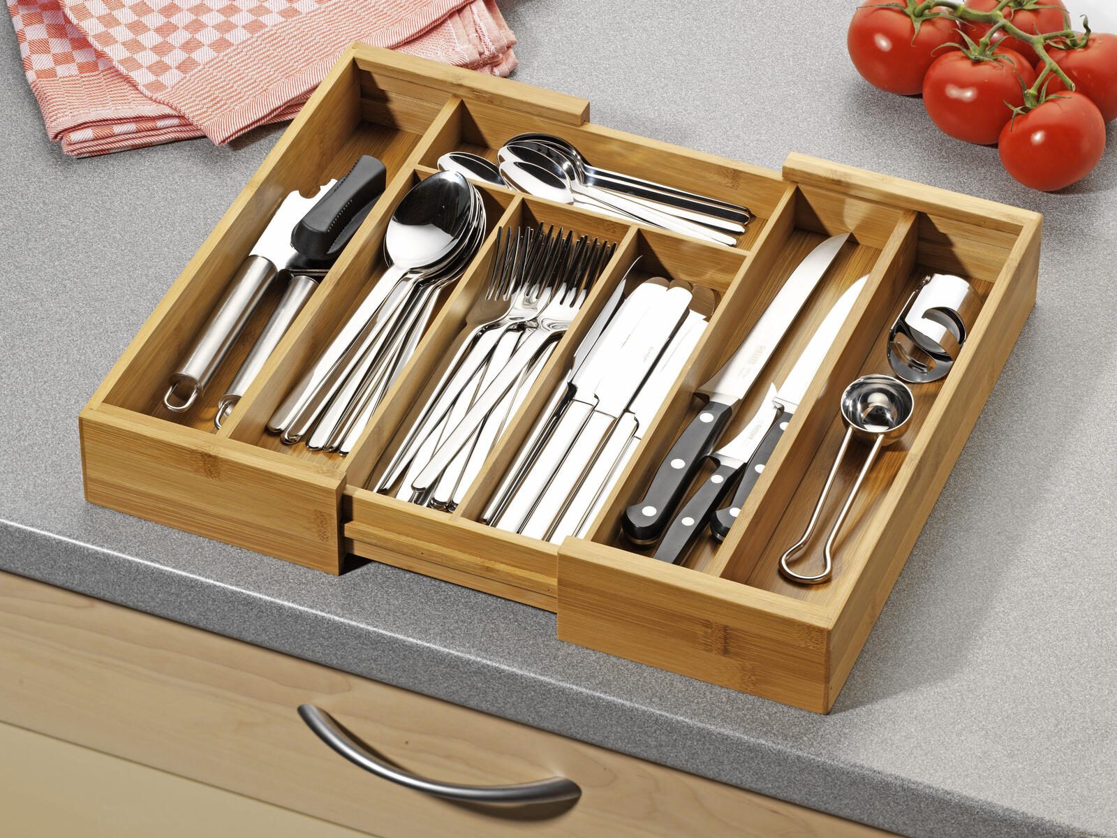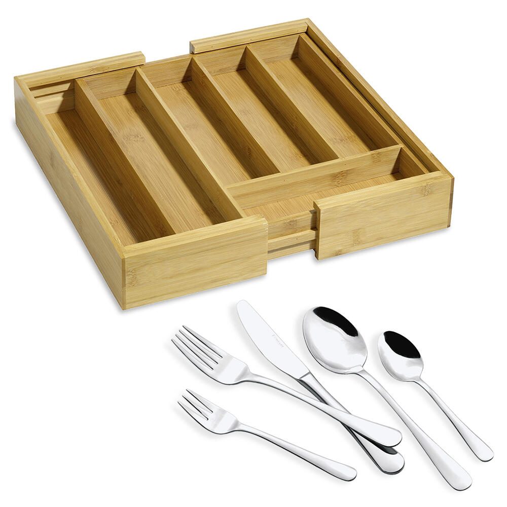 In dem braunen Besteckkasten SIMON findest du insgesamt 7 Fächer, die eine übersichtliche Organisation deines Bestecks ermöglichen. Egal ob Messer, Gabeln, Löffel oder andere Küchenhelfer - hier findet jedes Teil seinen Platz. Die natürliche Farbe des Bambus verleiht dem Kasten ein warmes und ansprechendes Erscheinungsbild, das in jede Kücheneinrichtung passt.