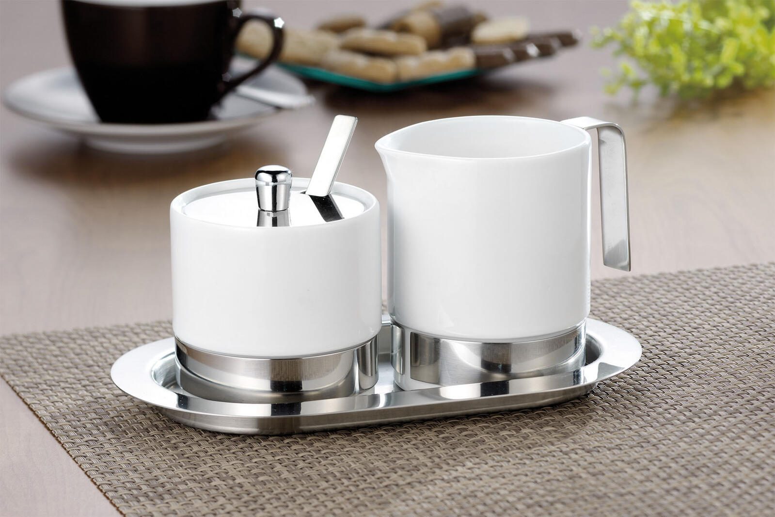 Esmeyer ADAM Milch- und Zucker-Set Sahnegießer: 0,25 l weiß/silber