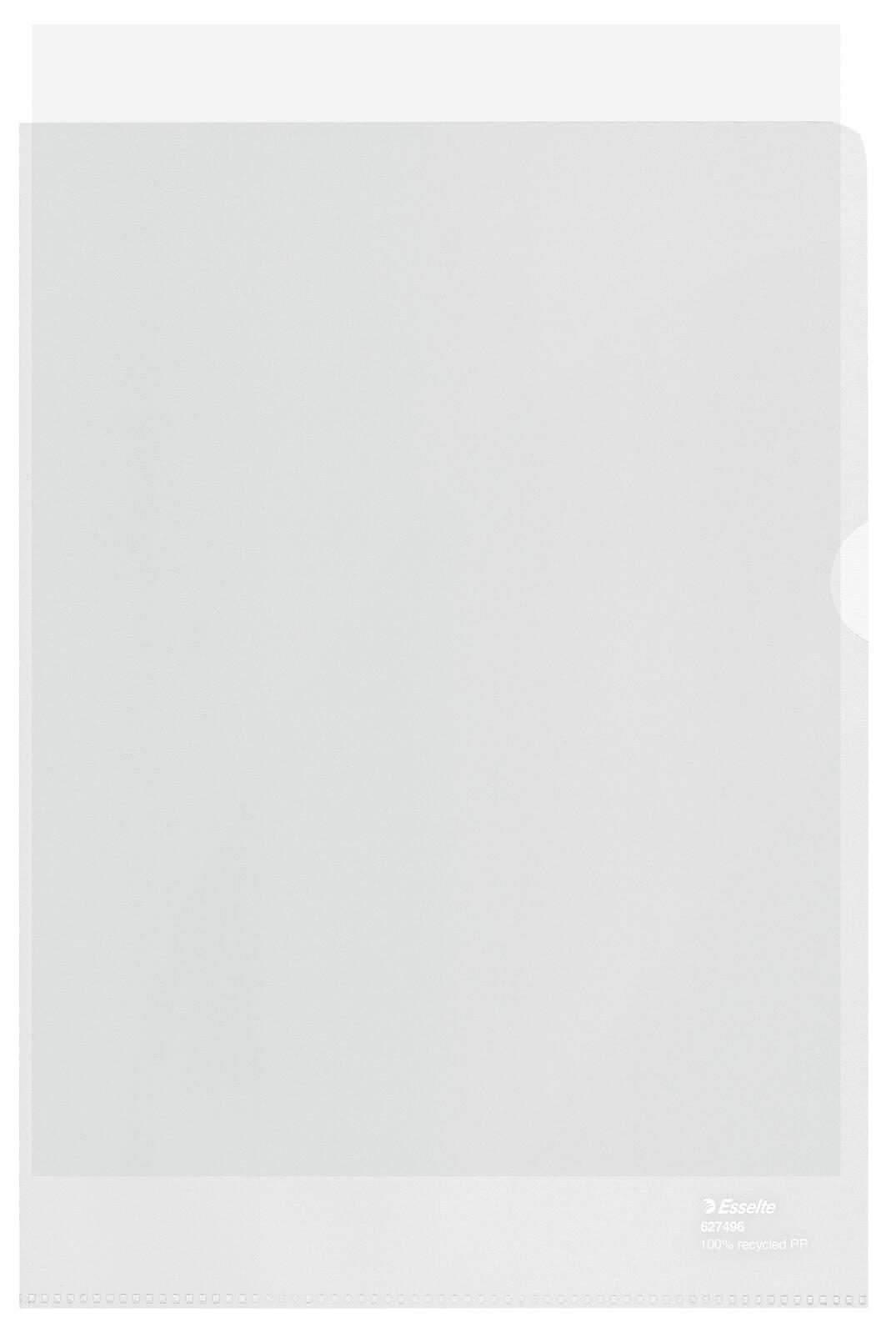 Die Esselte Sichthüllen DIN A4 transparent sind die ideale Lösung für die sichere Aufbewahrung und Präsentation deiner Dokumente. Hergestellt aus 100% recyceltem Polypropylen (PP), bieten diese Hüllen nicht nur eine umweltfreundliche Option, sondern sind auch zu 100% recycelbar. Die Verwendung von Industrieabfällen und Produktionsresten sorgt dafür, dass du mit einem nachhaltigen Produkt arbeitest, das extern getestet und von UL zertifiziert ist. Mit einer Stärke von 0,1 mm und einer genarbten Oberfläche sind diese Sichthüllen besonders robust und langlebig. Sie schützen deine Dokumente vor Staub und Schmutz, während der transparente Farbton eine klare Sicht auf den Inhalt ermöglicht. Die Hüllen sind dokumentenecht und verfügen über eine praktische Öffnung sowohl oben als auch seitlich, was das Einlegen und Entnehmen von Unterlagen erleichtert. Im Lieferumfang sind 100 Stück enthalten, was sie zur perfekten Wahl für Büros, Schulen oder den Heimgebrauch macht. Die Esselte Sichthüllen eignen sich optimal für das Format DIN A4 und bieten ausreichend Platz für verschiedene Dokumente. Dank der hochwertigen Verarbeitung sind sie eine zuverlässige Wahl für alle, die Wert auf Qualität und Nachhaltigkeit legen. Vertraue auf die Marke Esselte, die für ihre innovativen und funktionalen Produkte bekannt ist, und genieße die Vorteile dieser praktischen Sichthüllen. Sie sind nicht nur funktional, sondern tragen auch dazu bei, deine Unterlagen ordentlich und übersichtlich zu halten.Technische Daten