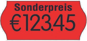 Die PrinterLabels AS Preisetiketten in der Größe 26,0 x 12,0 mm sind die perfekte Lösung für alle, die eine klare und auffällige Preisauszeichnung benötigen. Mit ihrem leuchtroten Farbton ziehen diese Etiketten sofort die Aufmerksamkeit der Kunden auf sich und heben Sonderangebote deutlich hervor. Der prägnante Aufdruck „Sonderpreis“ sorgt dafür, dass deine Angebote nicht übersehen werden und steigert die Wahrscheinlichkeit eines Kaufs. Diese Etiketten sind speziell für verschiedene Modelle wie SATO - KENDO, SATO 26, SAMARK 26 und Handy 1/6 geeignet, was sie zu einem vielseitigen Werkzeug für den Einzelhandel macht. Jede Rolle enthält 1.500 Etiketten, sodass du für einen langen Zeitraum gut ausgestattet bist. Die kompakte Größe von 26,0 x 12,0 mm ermöglicht es dir, die Etiketten problemlos auf Regalen, Produkten oder Preisschildern anzubringen, ohne viel Platz in Anspruch zu nehmen. Die PrinterLabels AS Preisetiketten sind nicht nur funktional, sondern auch einfach in der Handhabung. Sie sind ideal für den Einsatz in Geschäften, auf Märkten oder bei Verkaufsaktionen, wo schnelle und effektive Preisauszeichnungen erforderlich sind. Die leuchtrote Farbe sorgt dafür, dass deine Angebote sofort ins Auge fallen und die Kunden anziehen. Mit einem Pack von 12 Rollen bist du bestens gerüstet, um deine Preisgestaltung effektiv zu kommunizieren. Die langlebige und hochwertige Verarbeitung der Etiketten garantiert, dass sie auch bei wechselnden Temperaturen und Bedingungen gut haften und ihre Wirkung nicht verlieren. Vertraue auf die Qualität von PrinterLabels AS und optimiere deine Verkaufsstrategien mit diesen auffälligen Preisetiketten.Technische Daten