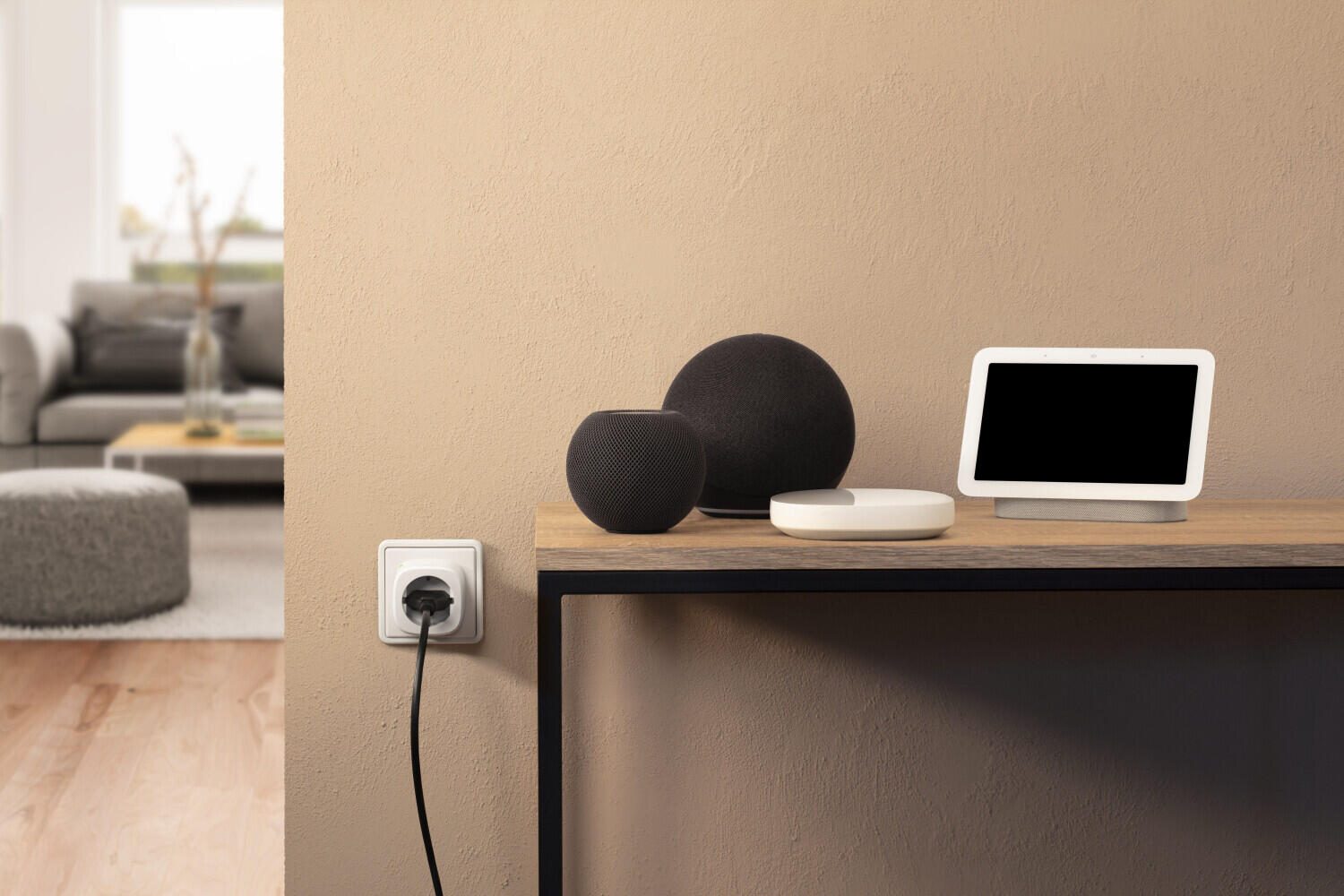 Schalte deine Leuchten und Geräte per Sprache oder App ein und aus, und steuere sie von unterwegs.
