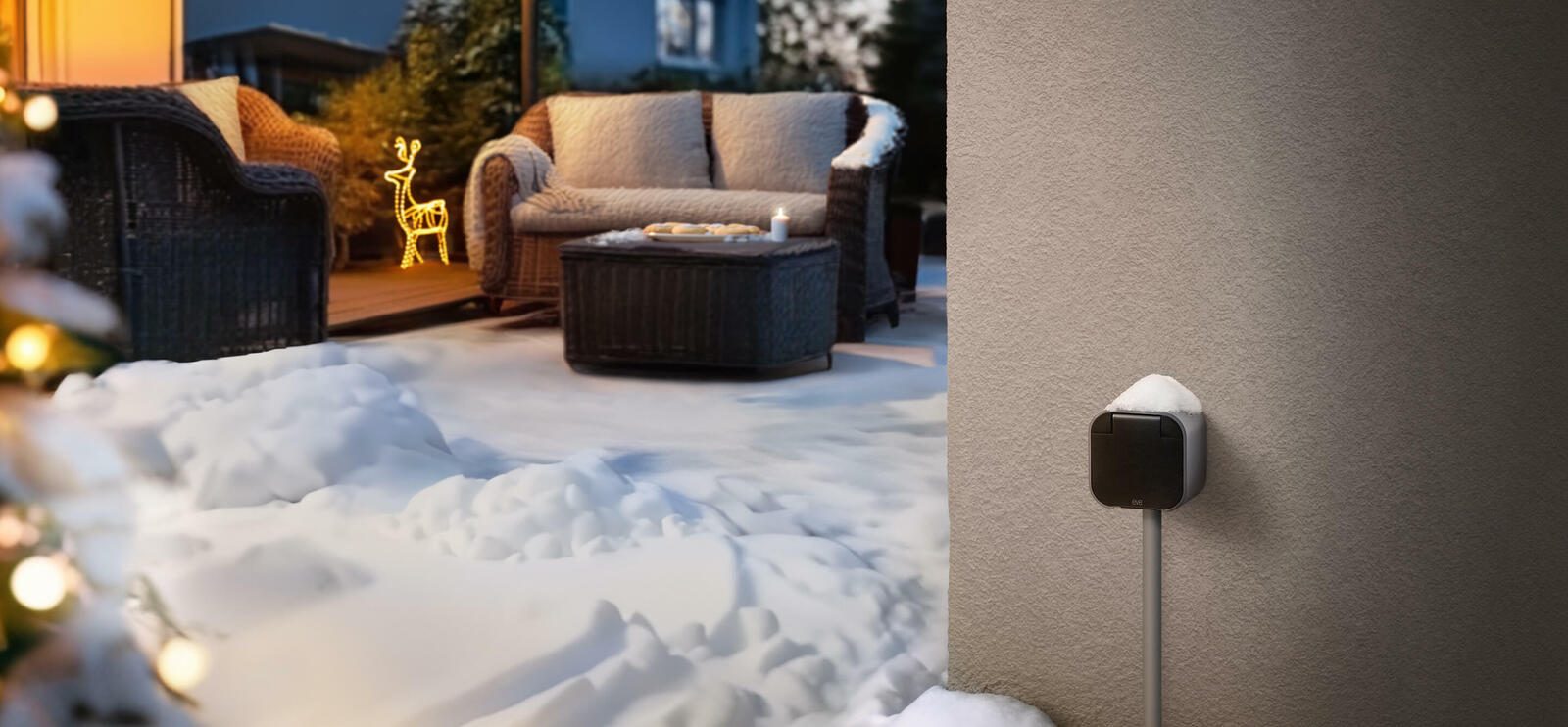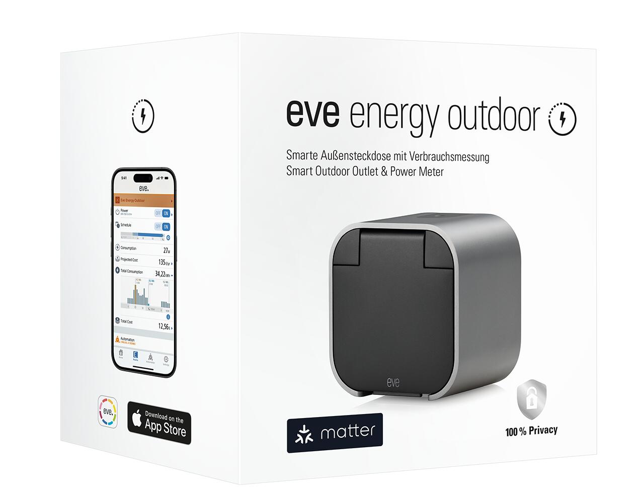Dank der Schutzklasse IP44 und einer soliden Klappe ist Eve Energy Outdoor für den Außeneinsatz gewappnet.