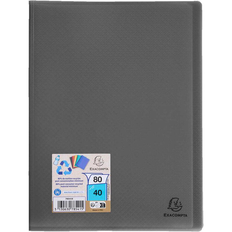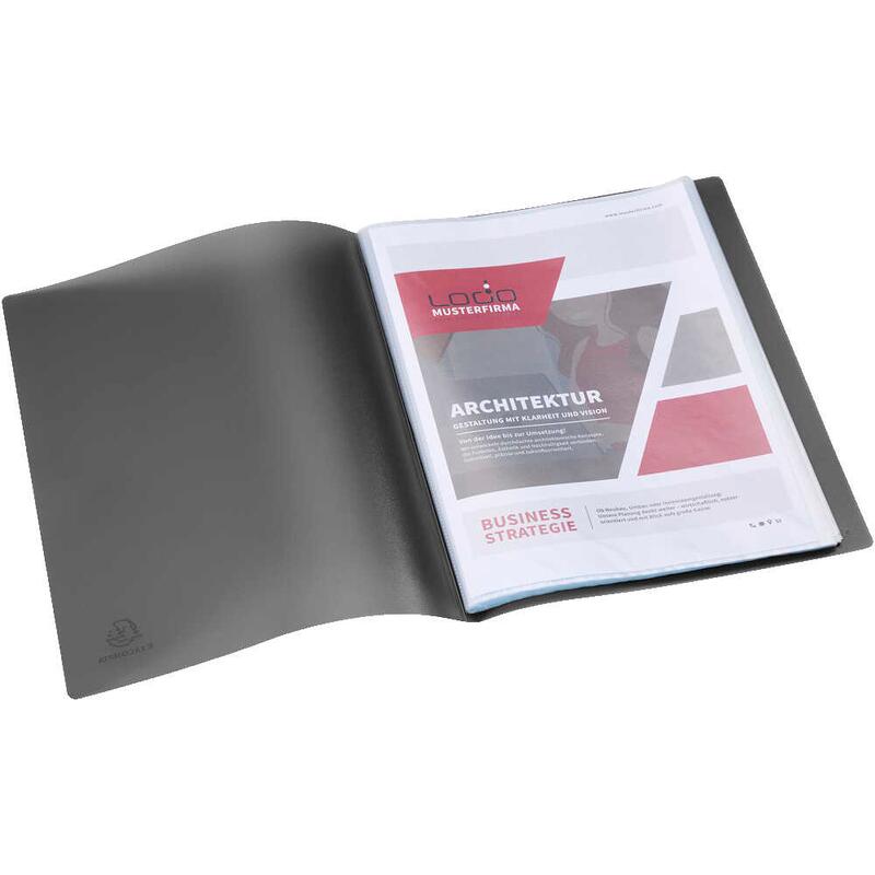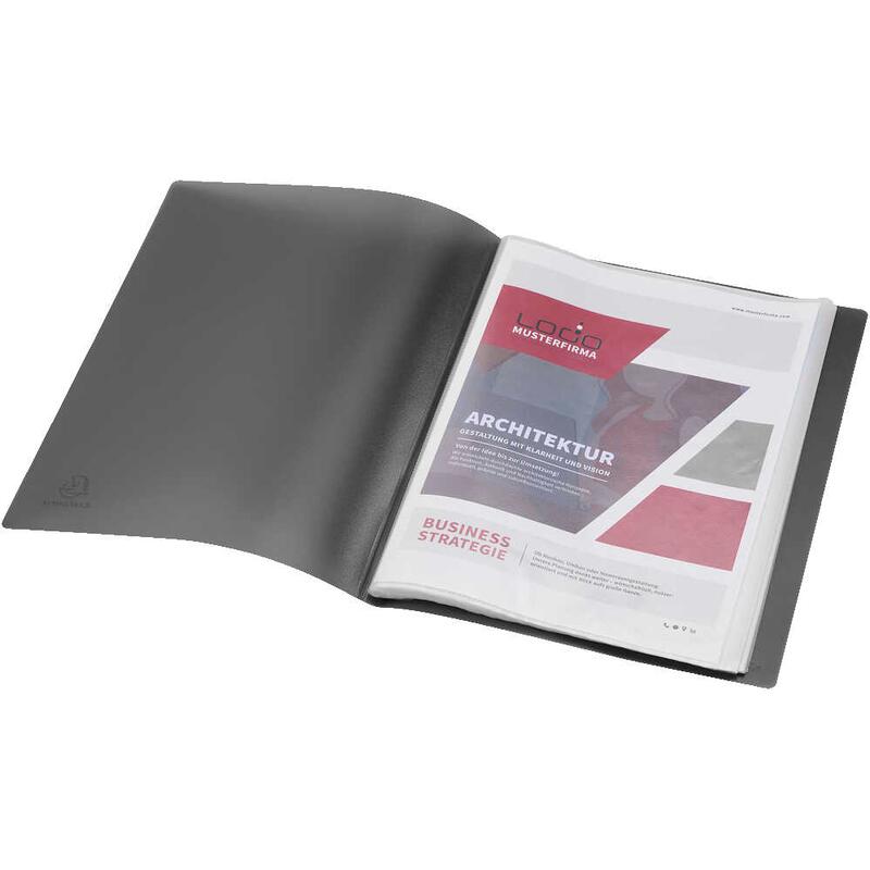- Ausführung: aus recyceltem Polypropylen, Einband aus Opak-Körnung, fest eingeschweißte, genarbte, oben offene Klarsichthüllen