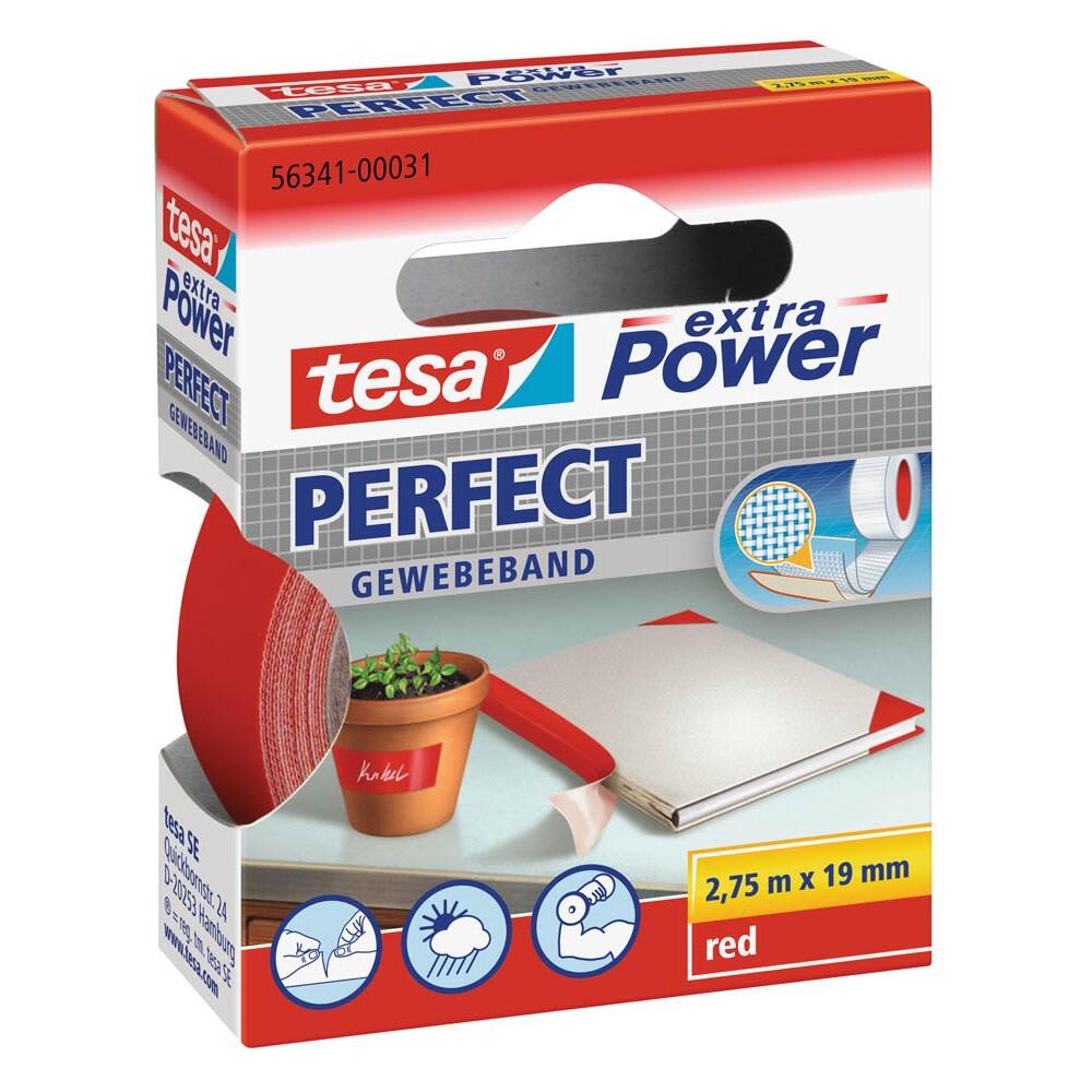 Tesa extra Power Perfect Gewebeband - 19 mm x 2. 75 m - Rot