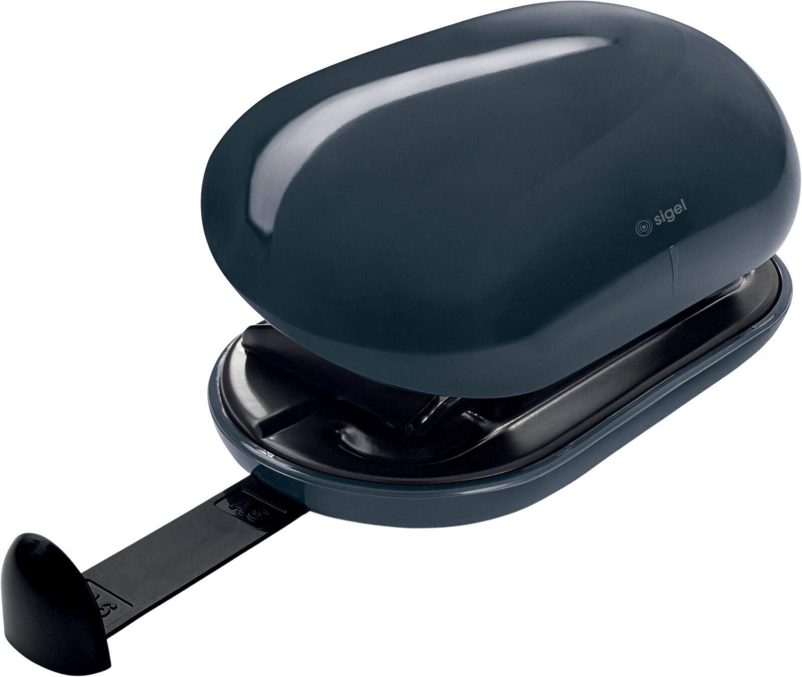 Der SIGEL Locher Eye-Style in elegantem dunkelgrau vereint Funktionalität und modernes Design. Dieser Bürolocher ist speziell für die Bedürfnisse im Büroalltag konzipiert und ermöglicht ein präzises und müheloses Lochen von Papier in den Formaten A4, A5, A6 sowie 888. Die runde Lochform sorgt für ein sauberes und professionelles Erscheinungsbild deiner Dokumente. Die Anschlagschiene des Locher Eye-Style gewährleistet eine exakte Ausrichtung des Papiers, was dir das Arbeiten erleichtert und die Effizienz steigert. Mit einem ansprechenden Farbton in dunkelgrau fügt sich dieser Locher nahtlos in jede Büroumgebung ein und setzt gleichzeitig einen stilvollen Akzent. Ein weiteres Highlight des SIGEL Locher Eye-Style ist die durchdachte Konstruktion, die eine einfache Handhabung ermöglicht. Trotz der hohen Funktionalität ist der Locher so gestaltet, dass er in deinem Arbeitsbereich nicht nur nützlich, sondern auch ansprechend ist. Die Oberteilverriegelung fehlt, was die Bedienung noch einfacher macht. Mit diesem Locher investierst du in ein hochwertiges Produkt des renommierten Herstellers SIGEL, das dir nicht nur im täglichen Büroalltag, sondern auch bei besonderen Anlässen, wie dem Erstellen von Präsentationen oder dem Organisieren von Unterlagen, wertvolle Dienste leisten wird. Der SIGEL Locher Eye-Style dark grey ist die perfekte Wahl für alle, die Wert auf Qualität und Design legen.Technische Daten