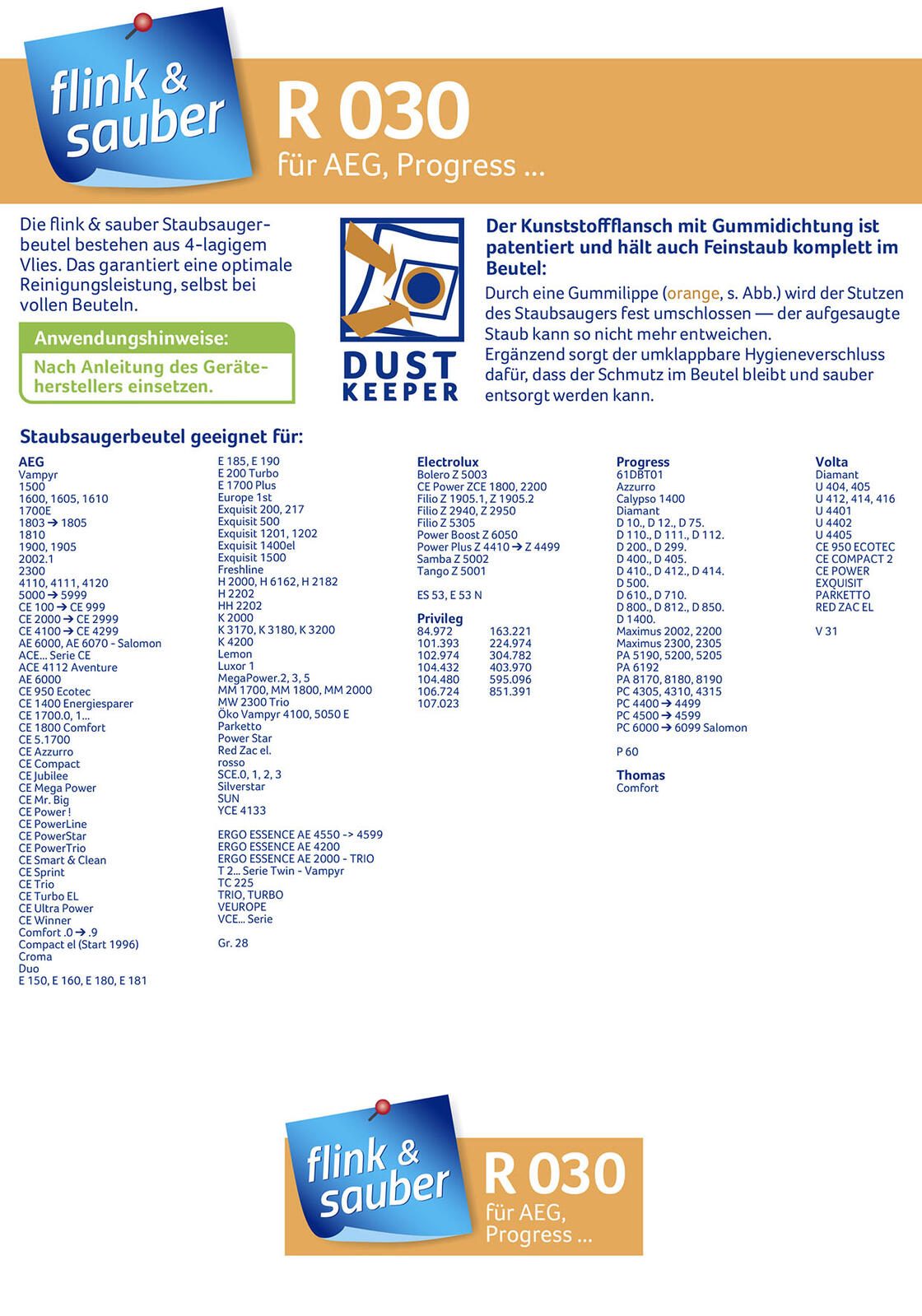 - geeignet für Geräte: AEG, Electrolux, Privileg, Progress, Thomas, Volta
