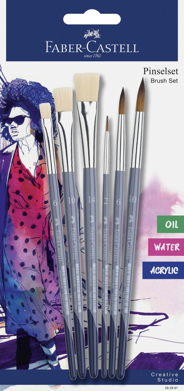 Das Fab.Pinselset 6 tgl. ist ein hochwertiges Pinselset, das sich ideal für Künstler und Kunstliebhaber eignet. Dieses Set umfasst verschiedene Pinsel wie Borstenpinsel, Flachpinsel und Haarpinsel, die von dem renommierten Hersteller FABER-CASTELL gefertigt wurden.