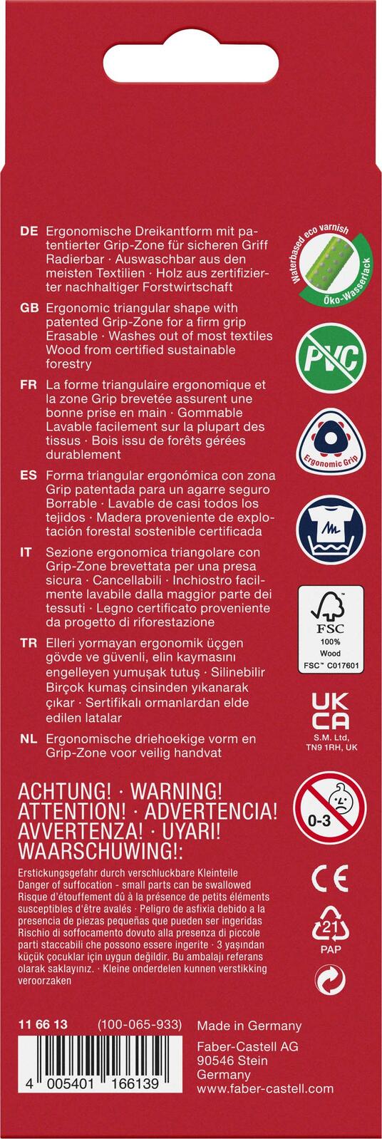 Die FABER-CASTELL Buntstifte Mehrfarbig sind die perfekte Wahl für kreative Köpfe, die Wert auf Qualität und Vielfalt legen. Mit einem ergonomischen Dreikantdesign bieten diese Buntstifte nicht nur einen komfortablen Halt, sondern fördern auch eine entspannte Handhaltung, die besonders bei längeren Zeichen- oder Malprojekten von Vorteil ist. In jedem Karton-Etui sind 10 verschiedene Farben enthalten, die dir eine breite Palette an Möglichkeiten bieten, um deine Ideen lebendig werden zu lassen. Die hohe Minenstabilität und Bruchfestigkeit der Stifte garantieren, dass du auch bei intensivem Gebrauch lange Freude an ihnen hast. Egal, ob du für die Schule, das Büro oder einfach für deine Freizeit kreativ werden möchtest, diese Buntstifte sind vielseitig einsetzbar und eignen sich sowohl für feine Linien als auch für großflächige Farbflächen. Die Schreibfarbe der FABER-CASTELL Buntstifte ist mehrfarbig, was bedeutet, dass du mit nur einem Set eine Vielzahl von Farbtönen zur Verfügung hast, um deiner Kreativität freien Lauf zu lassen. Durch die hohe Qualität der Minen kannst du sicher sein, dass die Farben gleichmäßig und intensiv aufgetragen werden, sodass deine Kunstwerke strahlend und lebendig wirken. Mit einem Inhalt von 10 Stiften in einem praktischen Karton-Etui sind die FABER-CASTELL Buntstifte nicht nur ideal für den eigenen Gebrauch, sondern auch ein wunderbares Geschenk für Freunde und Familie, die das Zeichnen und Malen lieben. Entdecke die Welt der Farben mit den FABER-CASTELL Buntstiften und lass deiner Kreativität freien Lauf.Technische Daten