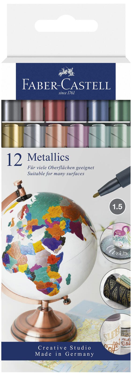 Der FABER-CASTELL Permanentmarker 1.5 mm Mehrfarbig ist der ideale Begleiter für kreative Projekte und vielseitige Anwendungen. Mit seiner rundspitzen Form ermöglicht er präzise Strichführungen und ein angenehmes Schreibgefühl. Die Strichstärke von 1.5 mm sorgt dafür, dass deine Notizen, Zeichnungen oder Markierungen klar und deutlich sichtbar sind. Dieser Permanentmarker überzeugt durch seine hochwertigen Eigenschaften: Er ist geruchsarm, was ein angenehmes Arbeiten ermöglicht, und eignet sich für fast alle Oberflächen, darunter Papier, Karton, Glas, Kunststoff, Metall und Stein. Dank der permanenten und wischfesten Tinte kannst du sicher sein, dass deine Arbeiten auch unter schwierigen Bedingungen bestehen bleiben. Die Tinte ist zudem wasserfest und lichtbeständig, sodass deine Kunstwerke und Notizen lange Freude bereiten. Die Schreibfarbe ist mehrfarbig und umfasst eine breite Palette an attraktiven Farbtönen wie „heart of gold“, „nothing else metals“, „copper cabana“ und viele mehr. Dadurch kannst du deiner Kreativität freien Lauf lassen und deine Projekte individuell gestalten. Die praktische Clip-Funktion ermöglicht es dir, den Marker überall hin mitzunehmen, ohne ihn zu verlieren. Das Produkt kommt in einer ansprechenden Verpackung mit 12 Stück, was es ideal für den Einsatz in Schulen, Büros oder für persönliche Bastelprojekte macht. Mit dem FABER-CASTELL Permanentmarker 1.5 mm Mehrfarbig hast du ein zuverlässiges Werkzeug in der Hand, das durch Qualität und Vielseitigkeit besticht.Technische Daten