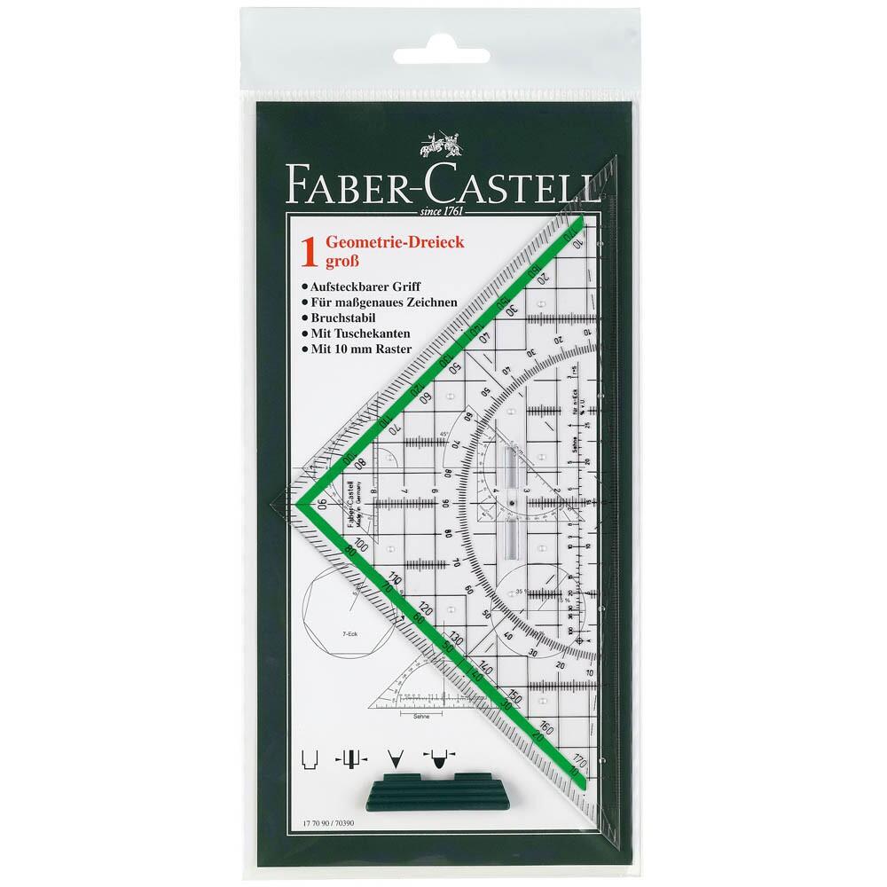 Das FABER-CASTELL Geodreieck mit einer Länge von 20,0 cm ist ein unverzichtbares Werkzeug für präzises Zeichnen und Messen. Mit seinen durchdachten Funktionen unterstützt es sowohl Schüler als auch kreative Köpfe in ihrem Alltag. Die klaren Winkelangaben und die Markierungen für Parallellinien ermöglichen es dir, geometrische Figuren und technische Zeichnungen mit Leichtigkeit zu erstellen. Eine besondere Eigenschaft dieses Geodreiecks ist die integrierte 7° und 42° Zirkelabgriffsskala, die dir hilft, exakte Kreisbögen und Winkel zu zeichnen. Dies ist besonders vorteilhaft, wenn du in der Schule oder im Studium komplexe Aufgaben bewältigen musst. Darüber hinaus verfügt das Geodreieck über einen praktischen aufsteckbaren Griff, der die Handhabung erleichtert und für mehr Komfort sorgt. Mit den Maßen von 22,0 x 11,5 cm (BxH) ist das Geodreieck kompakt und lässt sich problemlos in jedem Mäppchen verstauen. Das 10-mm Raster und die gegenläufige Grad-Skala bieten dir eine zusätzliche Orientierungshilfe beim Zeichnen. So kannst du sicherstellen, dass deine Linien stets präzise und maßstabgerecht sind. Das FABER-CASTELL Geodreieck ist nicht nur funktional, sondern auch ein stilvolles Schreibutensil, das in keinem Arbeitsplatz fehlen sollte. Egal, ob du es für die Schule, das Studium oder kreative Projekte verwendest, dieses Geodreieck wird dir wertvolle Dienste leisten und deine geometrischen Zeichnungen auf ein neues Level heben.Technische Daten