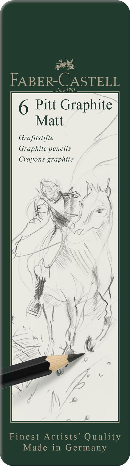 Die FABER-CASTELL Graphitstifte Pitt Graphite Matt 2B-12B sind die ideale Wahl für Künstler und Zeichner, die monochrome Grafitarbeiten lieben. Mit einer Vielzahl von Härtegraden von 2B bis 12B bieten diese Stifte eine bemerkenswerte Flexibilität, um unterschiedliche Schattierungen und Texturen zu erzeugen. Der schwarze Schaft verleiht den Stiften nicht nur ein elegantes Aussehen, sondern sorgt auch dafür, dass sie in jedem kreativen Umfeld gut zur Geltung kommen. Die Grafitmine dieser Stifte zeichnet sich durch eine extrem hohe Bruchsicherheit aus, was bedeutet, dass du dich auf eine langlebige und zuverlässige Nutzung verlassen kannst. Dies ist besonders wichtig, wenn du in intensiven kreativen Phasen arbeitest oder häufig unterwegs bist. Mit einem Pack von 6 Stiften bist du bestens ausgestattet, um deine Ideen ohne Unterbrechung festzuhalten und zu verfeinern. Die Standardausführung der Graphitstifte ermöglicht eine einfache Handhabung und Kontrolle, was sie ideal für präzise Zeichentechniken macht. Ob du feine Linien oder kräftige Schattierungen erzeugen möchtest, die Pitt Graphite Matt Stifte bieten dir die nötige Vielseitigkeit. Die Qualität der Minen sorgt dafür, dass du selbst bei längerem Zeichnen ein gleichmäßiges und sanftes Schreibgefühl erlebst. Mit den FABER-CASTELL Graphitstiften Pitt Graphite Matt 2B-12B erhältst du nicht nur ein hervorragendes Werkzeug für deine kreativen Projekte, sondern auch ein Produkt, das auf die Bedürfnisse von Künstlern abgestimmt ist. Die Kombination aus hochwertigem Grafit und einem ansprechenden Design macht diese Stifte zu einem unverzichtbaren Begleiter für alle, die ihre künstlerischen Fähigkeiten weiterentwickeln möchten.Technische Daten