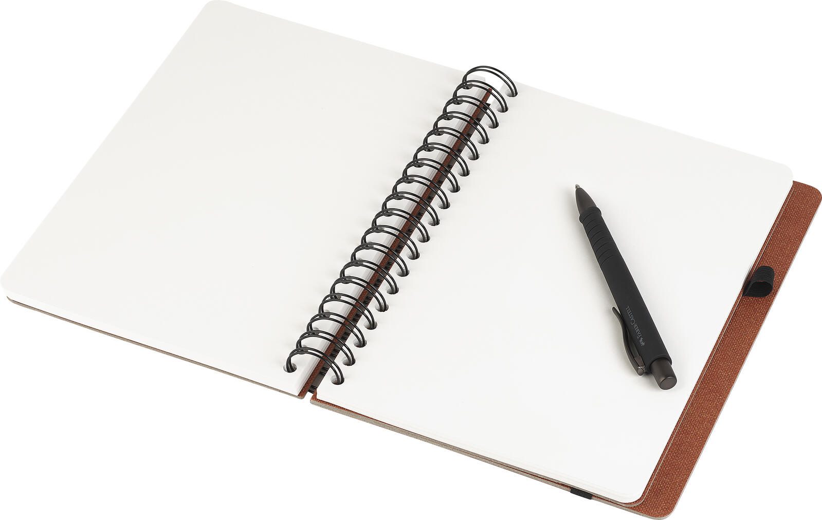 Das Notizbuch ist mit einer festen Bindung ausgestattet, die für Stabilität sorgt und das Umblättern der Seiten erleichtert. Die Farbe des Einbands ist in einem natürlichen Braunton gehalten, der als „sienna“ beschrieben wird. Das Material des Einbands besteht aus Karton, was dem Produkt eine robuste und zugleich leichte Haptik verleiht. Ein Verschluss ist nicht vorhanden, sodass das Buch schnell und unkompliziert geöffnet werden kann.