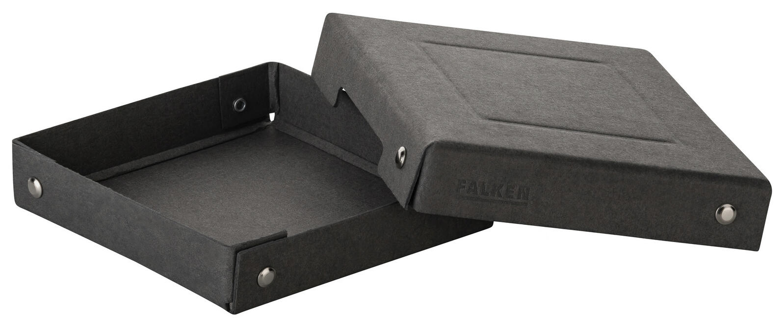 Die FALKEN PURE Aufbewahrungsbox in den Maßen 13,0 x 13,0 x 2,5 cm bietet eine elegante und zugleich praktische Lösung zur sicheren Aufbewahrung verschiedenster persönlicher Gegenstände. Gefertigt aus umweltfreundlichem Recycling-Karton, verbindet diese Box Nachhaltigkeit mit Funktionalität. Mit einem Fassungsvermögen von bis zu 310 Blatt eignet sie sich ideal zur ordentlichen Lagerung von Dokumenten, Fotos, Schmuck oder anderen wertvollen Kleinteilen.