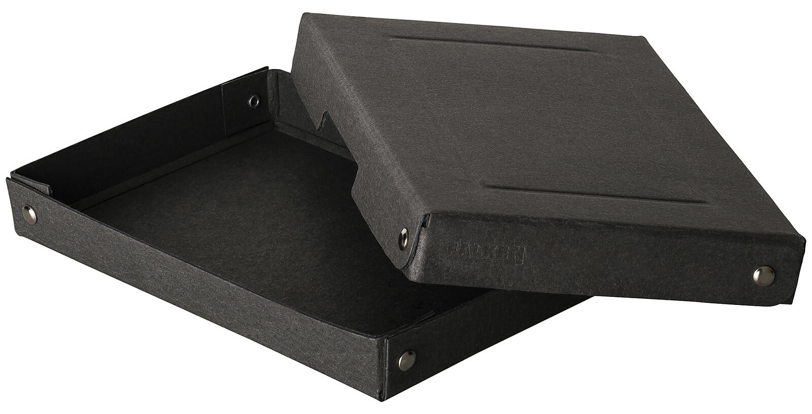 - Besonderheiten: Box mit Deckel aus hochwertigem Recycling-Karton (Buchbinderpappe), genietet, mit Beschriftungsfeld und Griffaussparung