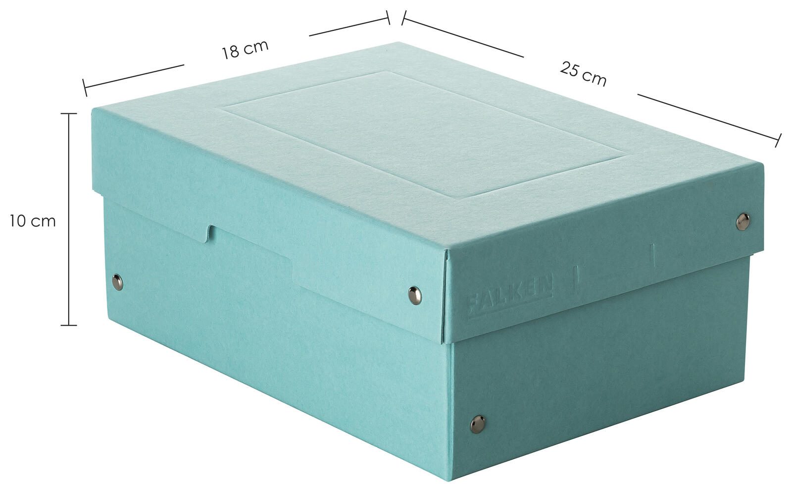 Die FALKEN PURE Aufbewahrungsbox in einem sanften Pastellblau überzeugt durch ihr elegantes Design und ihre praktische Funktionalität. Hergestellt aus hochwertigem Karton, bietet sie eine stabile und zugleich leichte Lösung zur Aufbewahrung verschiedenster Gegenstände. Mit den Außenmaßen von 18,0 x 25,0 x 10,0 cm ist sie optimal auf das Format DIN A5 abgestimmt und fasst bis zu 1250 Blatt Papier.