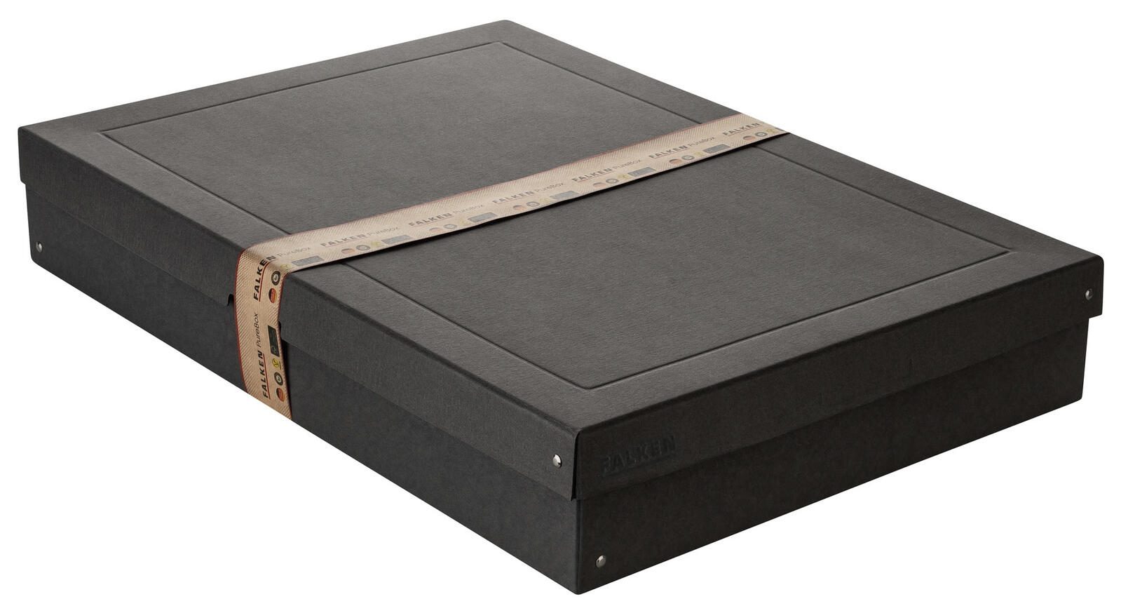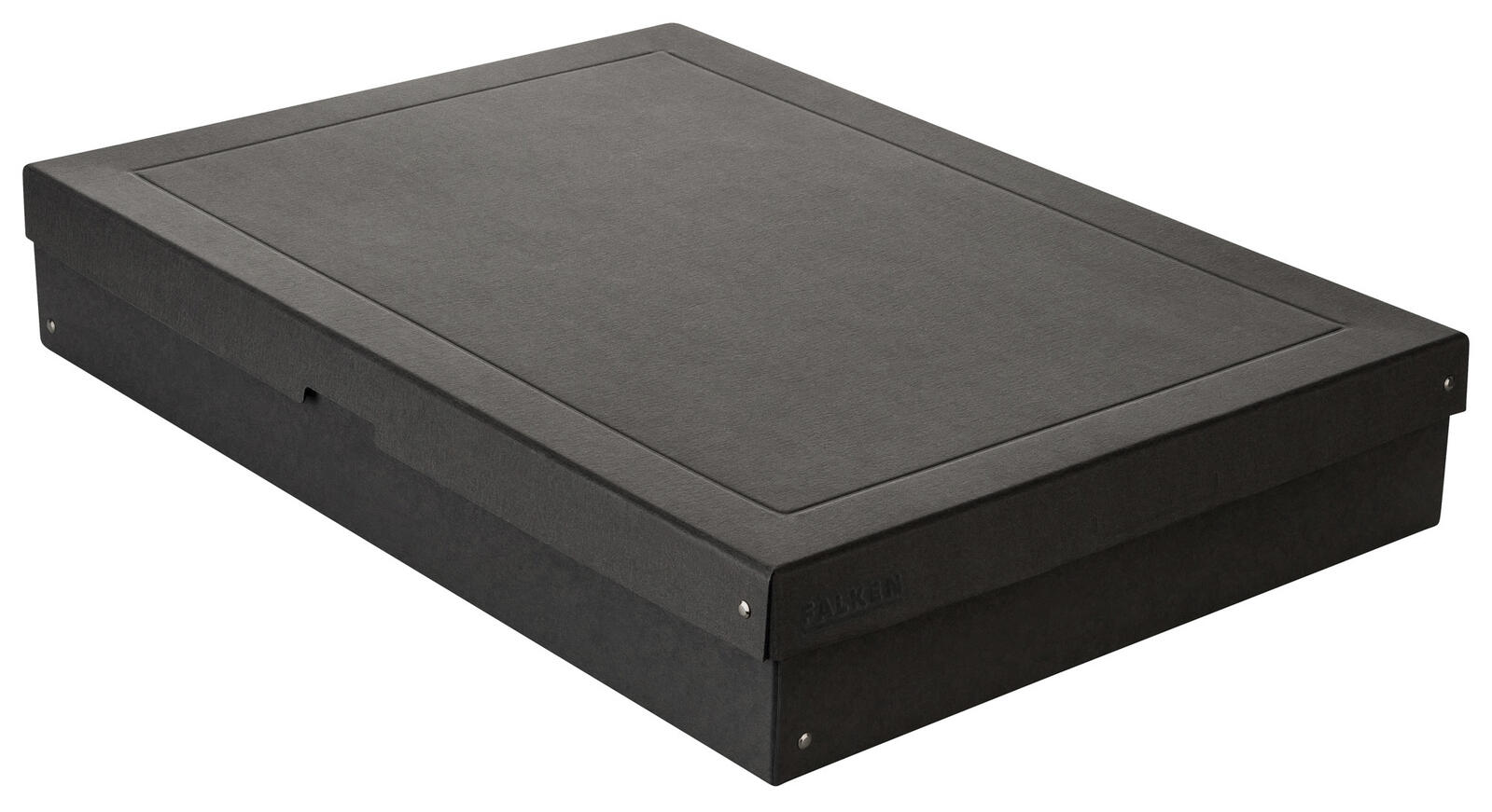 Die FALKEN PURE Aufbewahrungsbox bietet mit einem Fassungsvermögen von 27 Litern eine praktische Lösung zur ordentlichen Aufbewahrung von Dokumenten im Haushalt und Büro. Sie ist speziell für die Aufnahme von DIN A2-Formaten konzipiert und ermöglicht so eine sichere und platzsparende Archivierung größerer Unterlagen. Die Box besteht aus hochwertigem Recycling-Karton (Buchbinderpappe), was sie besonders nachhaltig und umweltfreundlich macht.