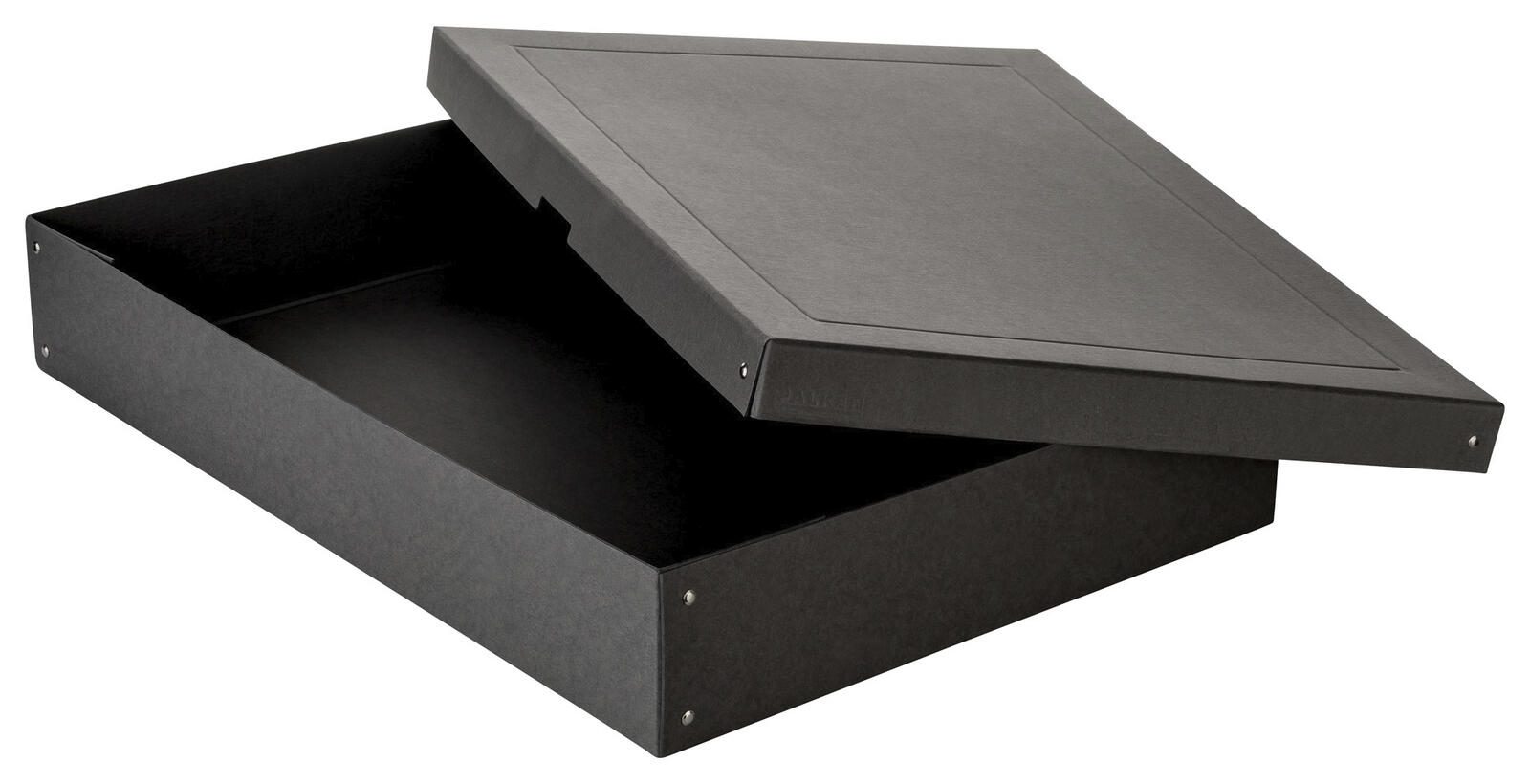 - Besonderheiten: Box mit Deckel aus hochwertigem Recycling-Karton (Buchbinderpappe), genietet, mit Beschriftungsfeld und Griffaussparung