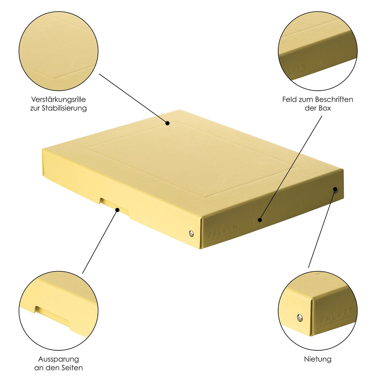 FALKEN PURE Aufbewahrungsbox 500 Blatt pastellgelb 24,0 x 32,0 x 4,0 cm, 1 St.