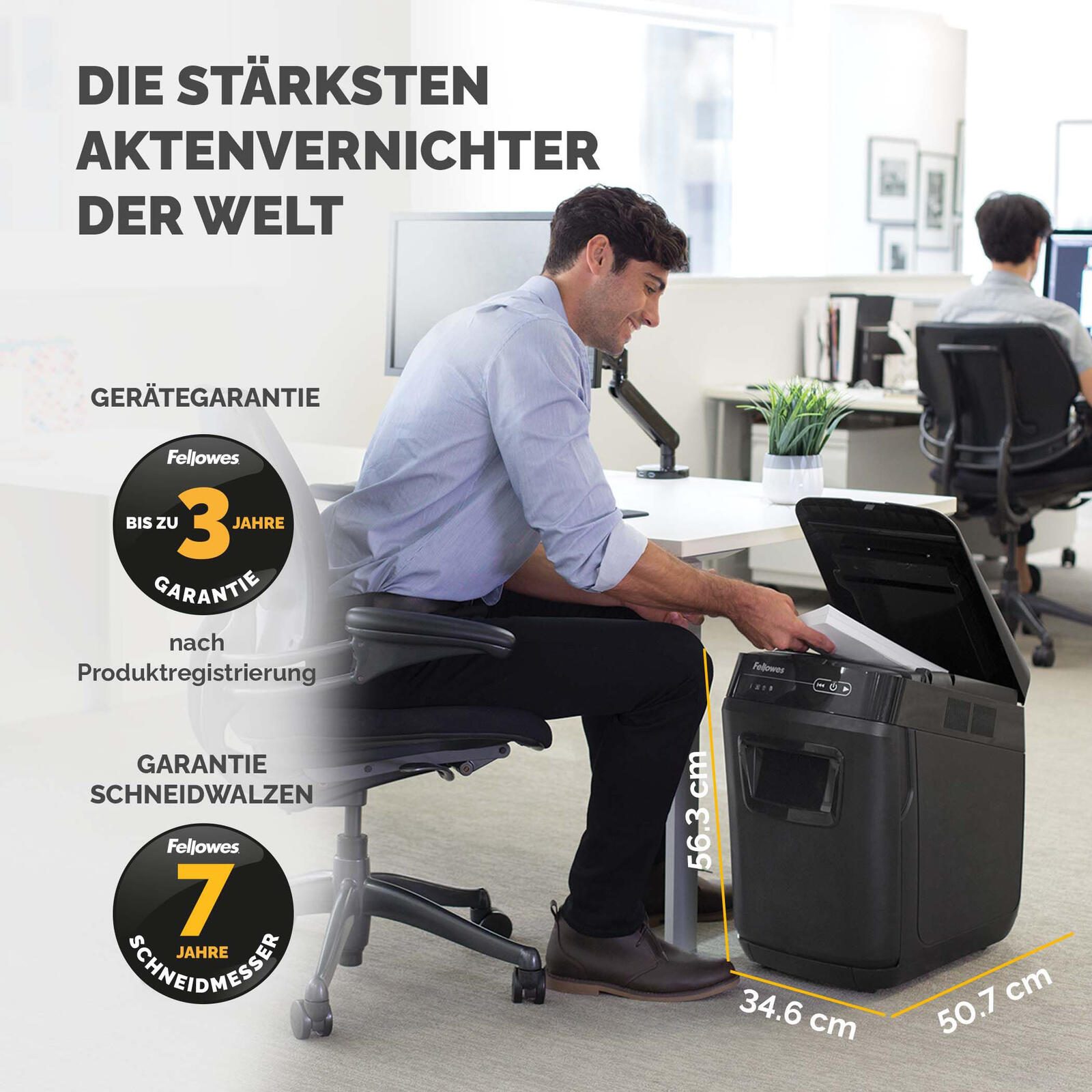 Der Fellowes Aktenvernichter Automax 200c in elegantem Schwarz bietet dir die Sicherheitsstufe P-4 gemäß DIN 66399. Dieser zuverlässige Aktenvernichter sorgt für die sichere Vernichtung vertraulicher Dokumente. Mit seinem leistungsstarken Schneidwerk zerkleinert er Papier mühelos und zuverlässig.