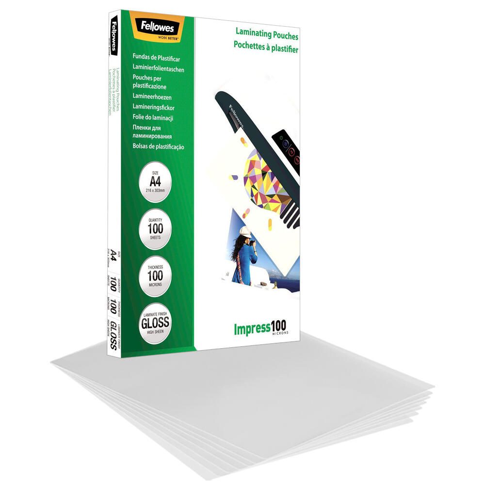 Die Fellowes Laminierfolien glänzend mit einer Stärke von 100 Mikron sind die ideale Lösung für die professionelle Laminierung deiner Dokumente im A4-Format. Diese hochwertigen Laminierfolien bieten nicht nur einen effektiven Schutz vor Abnutzung und Feuchtigkeit, sondern verleihen deinen Unterlagen auch einen ansprechenden Glanz, der die Farben lebendig und die Texte klar hervorhebt. Die Folien sind aus einem robusten Materialmix gefertigt, bestehend aus Polyester (PET), Ethyl-Vinyl-Acetat (EVA) und Low Density Polyethylen (LDPE). Diese Kombination sorgt für eine hohe Transparenz und Langlebigkeit, sodass deine laminierte Dokumente auch nach längerem Gebrauch wie neu aussehen. Dank der abgerundeten Ecken wird ein Verkratzen und Abblättern der Folienränder verhindert, was die Haltbarkeit zusätzlich erhöht. Mit einer Packung von 100 Stück bist du bestens ausgestattet, um eine Vielzahl von Dokumenten zu laminieren, sei es für Präsentationen, wichtige Unterlagen oder kreative Bastelprojekte. Die Folien sind einfach zu handhaben und eignen sich hervorragend für den Einsatz im Büro, in der Schule oder zu Hause. Die Fellowes Laminierfolien glänzend sind ohne Lochung und bieten dir somit eine durchgehende Laminierung ohne störende Löcher. Diese Eigenschaften machen sie zu einer praktischen Wahl für alle, die Wert auf eine professionelle und ansprechende Präsentation ihrer Dokumente legen. Vertraue auf die Qualität von Fellowes und genieße die Vorteile, die diese Laminierfolien bieten.Technische Daten