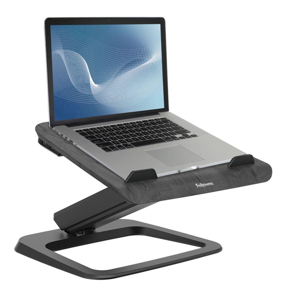 Der Fellowes Notebook-Ständer hana in elegantem Schwarz vereint Funktionalität und modernes Design. Hergestellt aus hochwertigem Holz und Aluminium, bietet dieser Ständer nicht nur eine ansprechende Optik, sondern auch eine stabile Grundlage für Ihr Notebook. Mit einer Tragkraft von bis zu 4 kg ist er ideal für Notebooks mit einer Bildschirmgröße von bis zu 43,2 cm (17,0 Zoll) geeignet. Die Abmessungen von 39,6 x 34,2 x 10,2 cm sorgen dafür, dass er in jeder Umgebung Platz findet, sei es im Büro oder zu Hause.