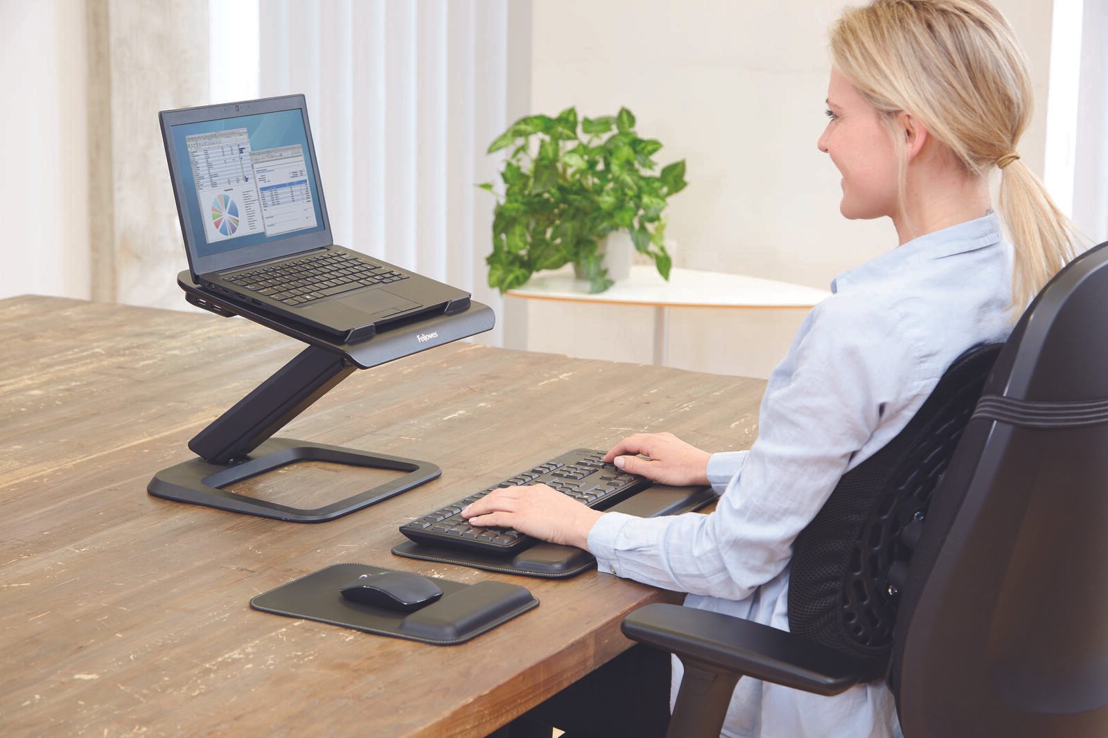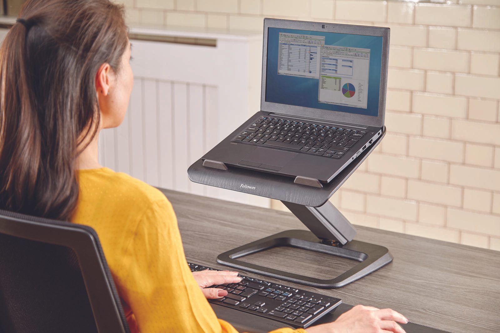 Der Fellowes Notebook-Ständer hana ist nicht nur funktional, sondern erfüllt auch hohe Standards in Bezug auf Ergonomie und Sicherheit, wie durch die Kennzeichnung nach ISO 9241-5 und FIRA belegt. Investieren Sie in Ihre Gesundheit und Produktivität mit diesem stilvollen und praktischen Notebook-Ständer, der Ihre Arbeitsweise revolutionieren kann.