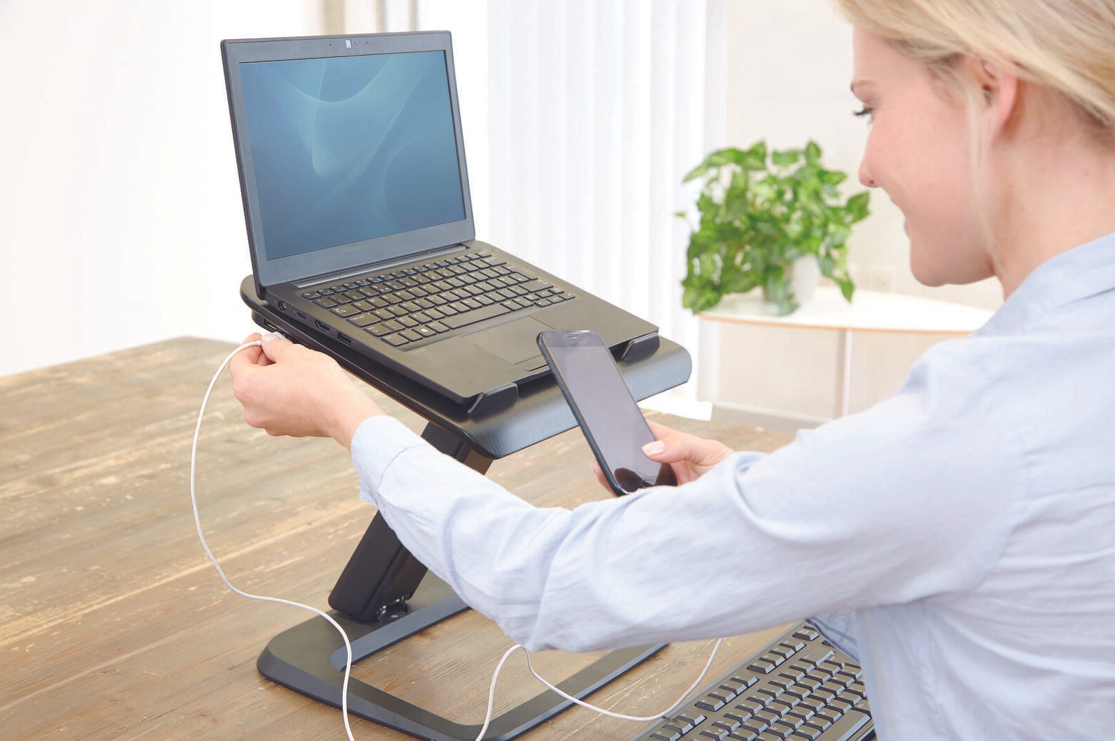 Ein herausragendes Merkmal des Fellowes Notebook-Ständers ist die Möglichkeit zur individuellen Höheneinstellung, die von 10,2 cm bis 40,6 cm reicht. Dies ermöglicht Ihnen, die optimale Position für eine ergonomische Nutzung zu finden, wodurch Nacken- und Rückenschmerzen vorgebeugt werden können. Zudem bietet der Ständer eine Neigungswinkeleinstellung von +45° bis -45°, die eine flexible Anpassung an Ihre Bedürfnisse ermöglicht.