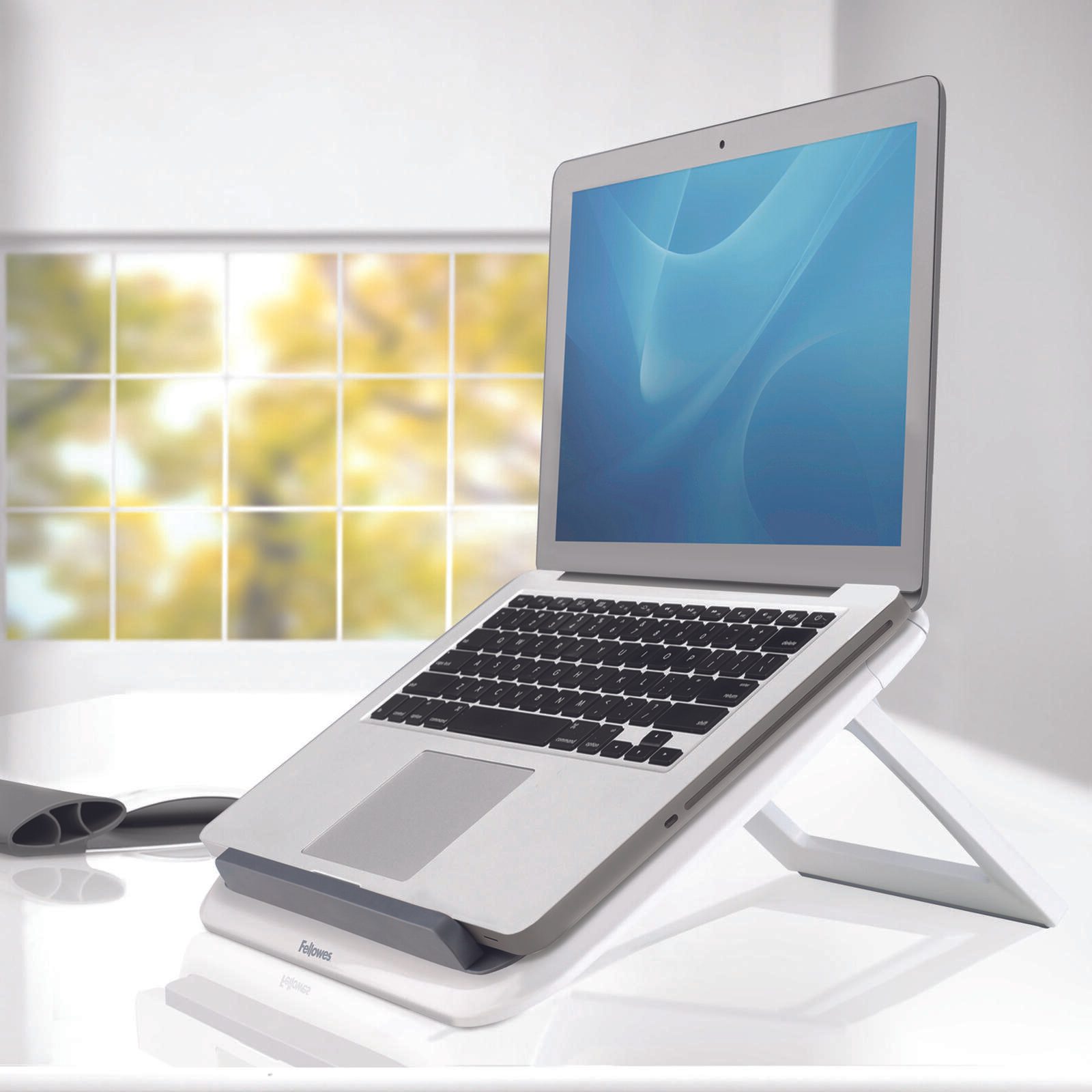 Mit einem Gewicht von nur 800 g ist der Ständer leicht zu transportieren und eignet sich sowohl für den Einsatz im Büro als auch für unterwegs. Die Gummibeschichtung sorgt dafür, dass Ihr Notebook sicher und rutschfest auf dem Ständer bleibt, während die schlichte, weiße Farbgebung sich harmonisch in jede Umgebung einfügt. Der Fellowes Notebook-Ständer ist die ideale Lösung für alle, die hohen Wert auf eine bequeme und gesunde Arbeitsweise legen und ihr Notebook stets optimal in Szene setzen möchten.