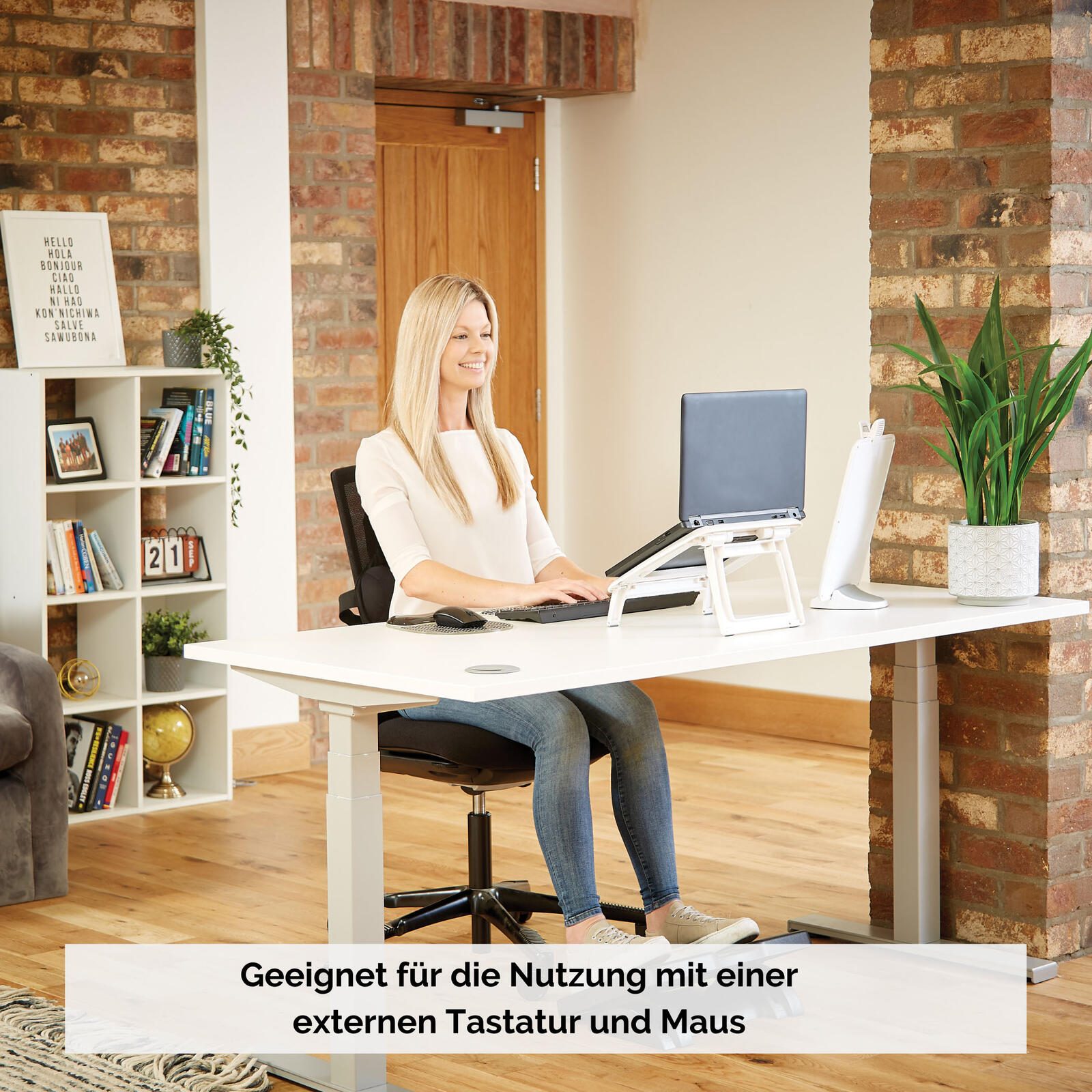 Ein herausragendes Merkmal des Fellowes Notebook-Ständers ist die Möglichkeit, den Winkel in sieben verschiedenen Positionen einzustellen. Dies ermöglicht Ihnen, die optimale Sicht- und Arbeitshaltung zu finden, was nicht nur den Komfort erhöht, sondern auch die Ergonomie während der Nutzung verbessert. Zudem ist der Ständer mit einer speziellen Lüftungshalterung ausgestattet, die eine Überhitzung Ihres Notebooks verhindert und somit die Lebensdauer Ihres Gerätes verlängert.