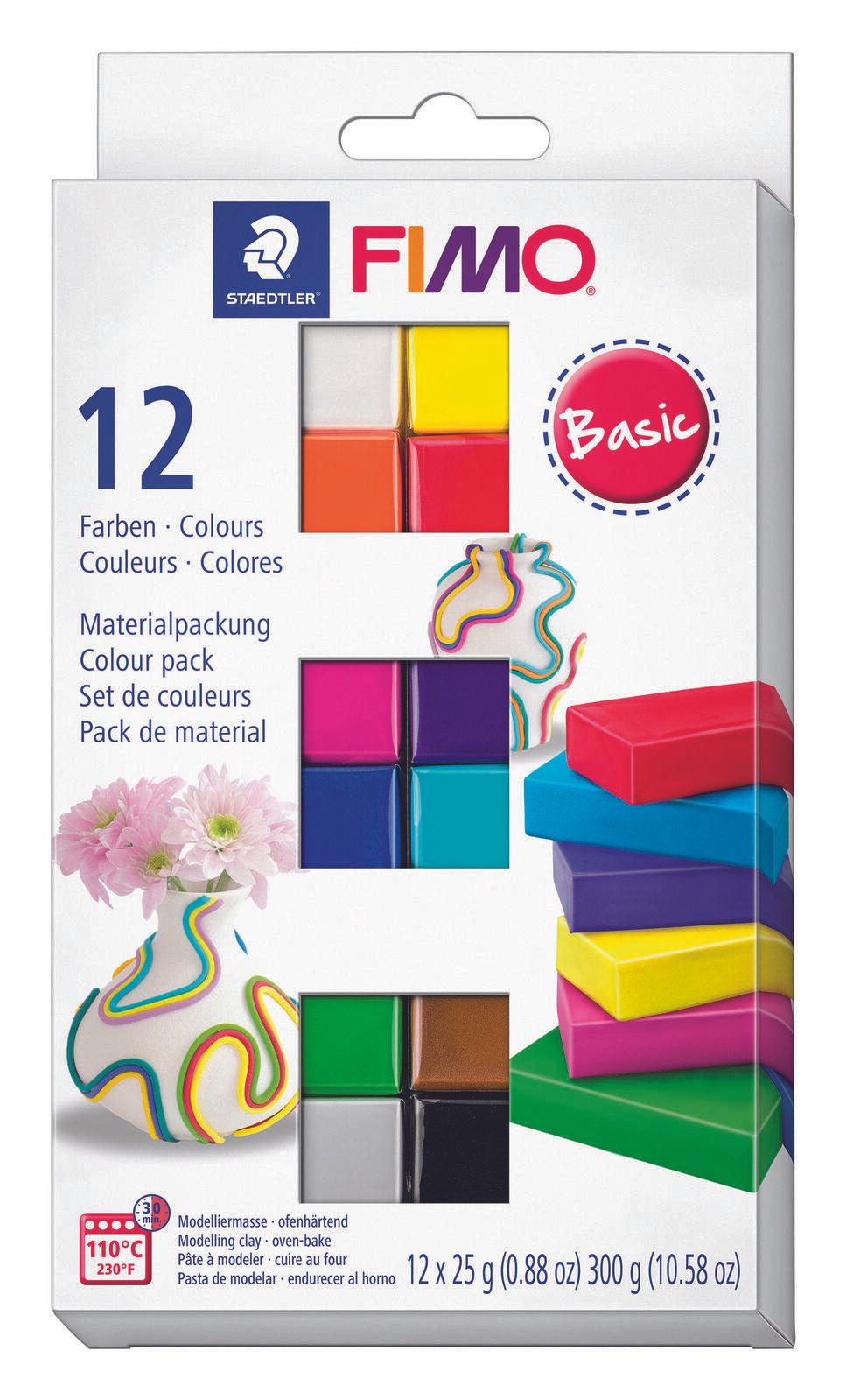 Die STAEDTLER Modelliermasse mehrfarbig ist die perfekte Wahl für kreative Köpfe, die ihre Ideen in die Realität umsetzen möchten. Diese hochwertige Modelliermasse bietet dir eine Vielzahl von Möglichkeiten, um deine Projekte individuell zu gestalten. Mit einem Gesamtgewicht von 300 Gramm, aufgeteilt in 12 praktische Portionen à 25,0 g, kannst du problemlos mit verschiedenen Farben arbeiten und deine Fantasie freien Lauf lassen. Die mehrfarbige Zusammensetzung dieser Modelliermasse sorgt für lebendige und ansprechende Ergebnisse. Egal, ob du Figuren, Schmuck oder andere Kunstwerke kreieren möchtest, die Farbvielfalt wird dich inspirieren und deine Kreationen zum Leben erwecken. Die Modelliermasse lässt sich leicht formen und bearbeiten, sodass du sowohl feine Details als auch größere Strukturen problemlos umsetzen kannst. Ein herausragendes Merkmal der STAEDTLER Modelliermasse ist die einfache Härtung. Du kannst deine Kunstwerke ganz einfach im Backofen bei 110°C für 30 Minuten aushärten lassen. Nach dem Härten erhältst du stabile und langlebige Ergebnisse, die deine Kreativität perfekt zur Geltung bringen. Diese praktische Handhabung macht die Modelliermasse ideal für Hobbykünstler, Kinder und alle, die Freude am Gestalten haben. Die Qualität von STAEDTLER ist bekannt und geschätzt, und die Fimo Modeliermasse Basic Set vereint all diese Vorteile in einem Produkt. Lass dich von der mehrfarbigen Modelliermasse inspirieren und entdecke die unendlichen Möglichkeiten, die sie dir bietet. Mit der STAEDTLER Modelliermasse mehrfarbig kannst du deine Ideen verwirklichen und einzigartige Kunstwerke schaffen, die begeistern.Technische Daten