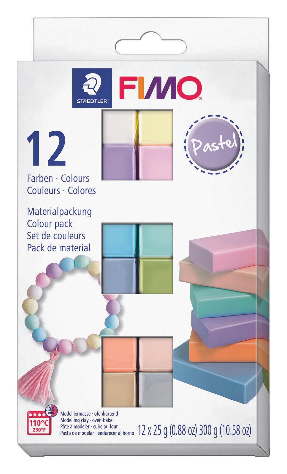 Die STAEDTLER Modelliermasse mehrfarbig ist die ideale Wahl für kreative Köpfe, die ihre Ideen in lebendigen Farben zum Leben erwecken möchten. Diese hochwertige Modelliermasse kommt in einem praktischen Set, das 12 Portionen zu je 25,0 g umfasst, und bietet dir eine beeindruckende Vielfalt an Farbtönen. Mit ihrer mehrfarbigen Zusammensetzung eröffnen sich unzählige Gestaltungsmöglichkeiten, die sowohl für Anfänger als auch für erfahrene Künstler geeignet sind. Ein herausragendes Merkmal dieser Modelliermasse ist ihre einfache Handhabung. Du kannst sie mühelos formen, modellieren und gestalten, um deine individuellen Kunstwerke zu kreieren. Nach dem Formen kannst du die Masse bei 110°C für 30 Minuten im Backofen härten lassen, wodurch deine Kreationen dauerhaft und robust werden. Diese Härtungsmethode sorgt dafür, dass deine Kunstwerke nicht nur schön, sondern auch langlebig sind. Mit einem Nettoinhalt von 300 Gramm bietet das Set ausreichend Material, um deine kreativen Projekte in Angriff zu nehmen. Die STAEDTLER Modelliermasse ist nicht nur vielseitig einsetzbar, sondern auch von hoher Qualität, was sie zur bevorzugten Wahl für viele Hobbykünstler macht. Die mehrfarbige Gestaltung ermöglicht es dir, verschiedene Techniken auszuprobieren und einzigartige Effekte zu erzielen. Egal, ob du Schmuck, Figuren oder andere dekorative Objekte herstellen möchtest, die STAEDTLER Modelliermasse mehrfarbig wird dich mit ihrer Flexibilität und Farbvielfalt begeistern. Lass deiner Kreativität freien Lauf und entdecke die Freude am Modellieren mit dieser hochwertigen Modelliermasse von STAEDTLER.Technische Daten