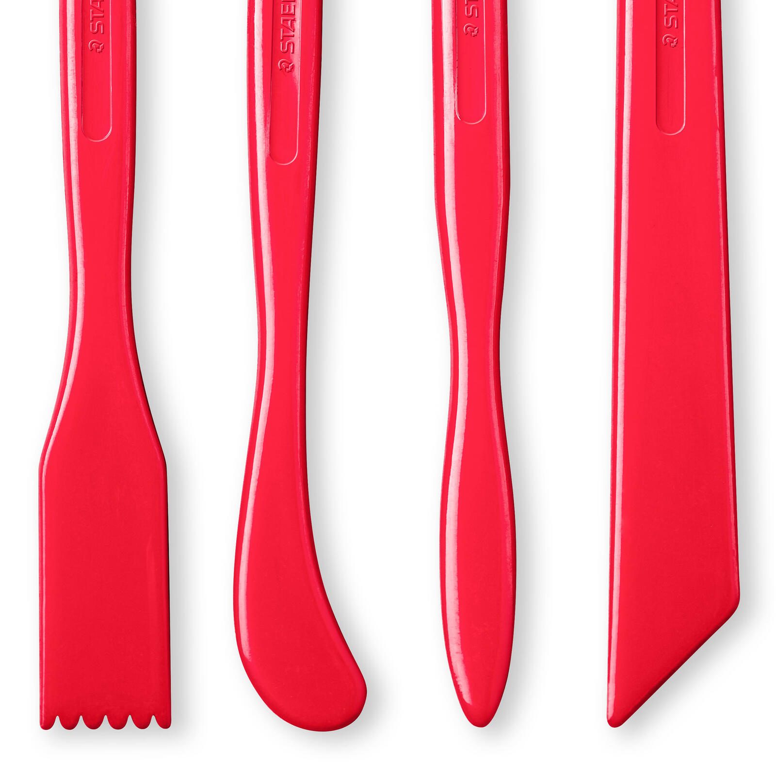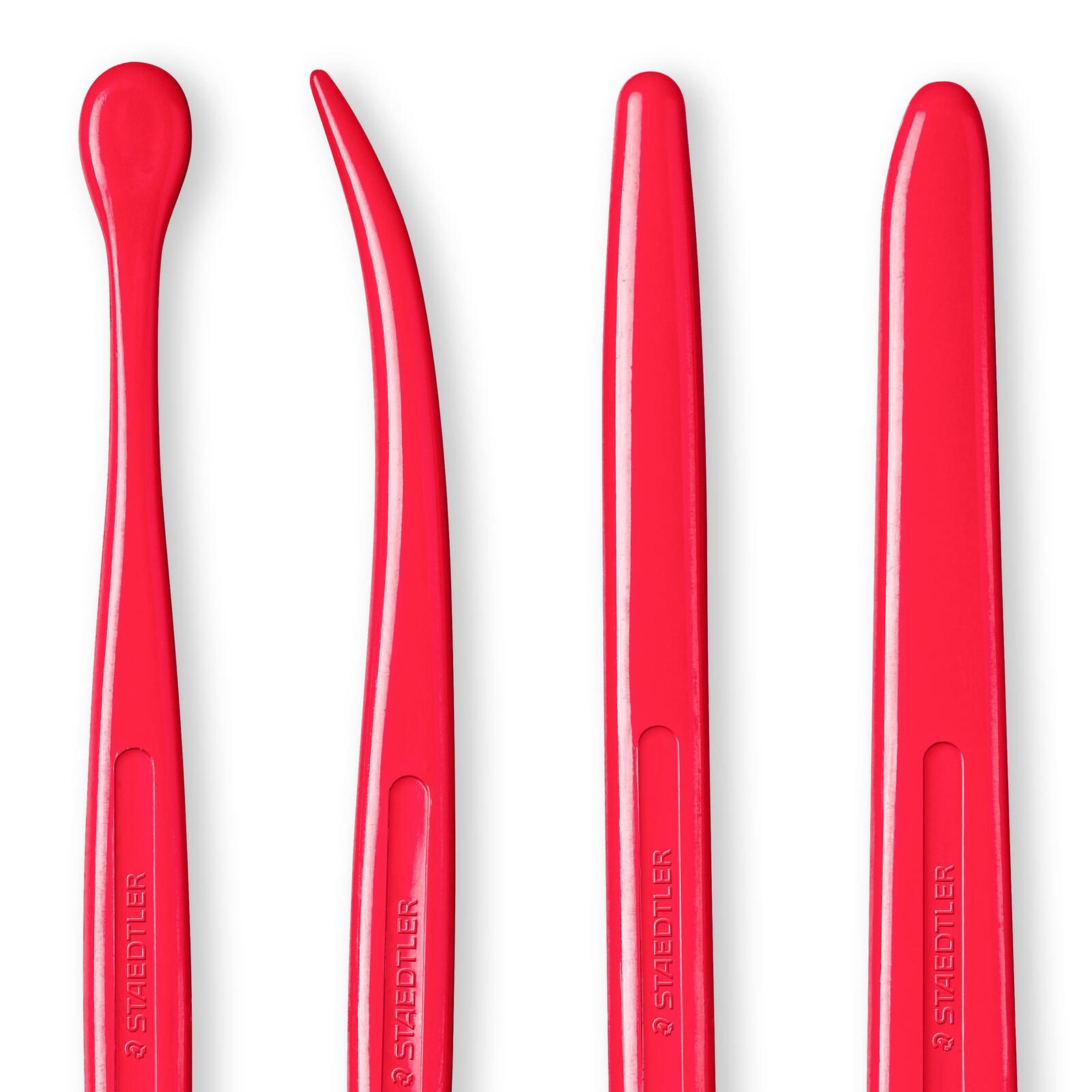 Das STAEDTLER Modellierwerkzeug in der auffälligen Farbe rot ist ein unverzichtbares Hilfsmittel für kreative Bastelprojekte. Hergestellt aus hochwertigem Kunststoff, bietet dieses Werkzeug nicht nur Langlebigkeit, sondern auch eine angenehme Handhabung. Mit vier verschiedenen Stäben aus Kunststoff ausgestattet, ermöglicht es eine Vielzahl von Modelliertechniken, sodass Sie Ihrer Fantasie freien Lauf lassen können.