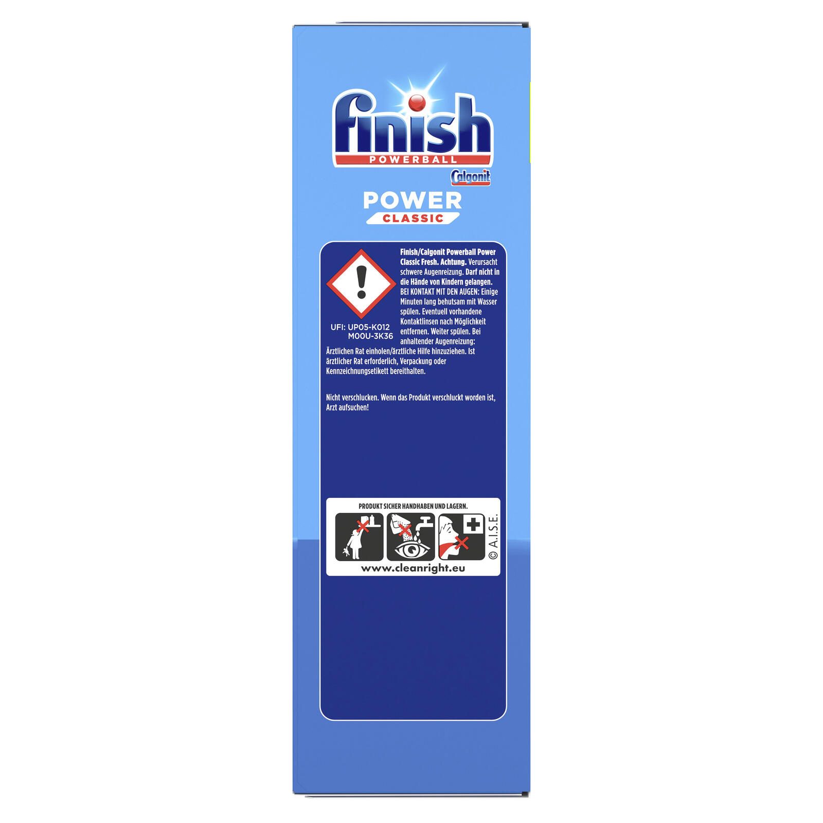 Spülmaschinentabs vorsichtig verwenden. Vor Gebrauch stets Etikett und Produktinformationen lesen.